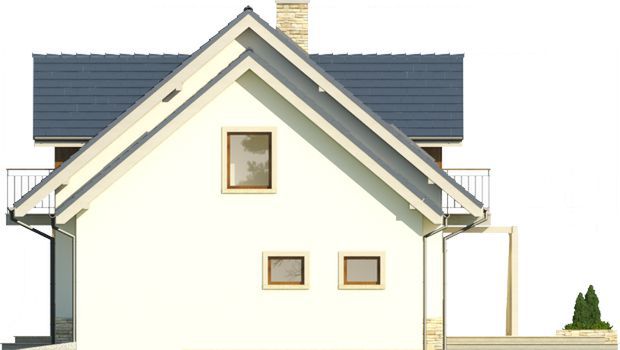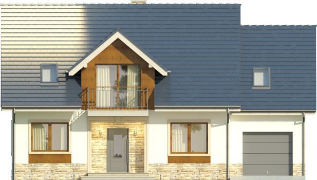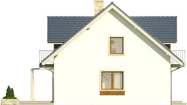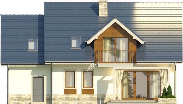 Graficzne opracowanie rzutów poglądowych widocznych na karcie projektu zostało wykonane przez Extradom.pl. Prezentowane przez Extradom.pl wizualizacje wykonane zostały przez autora projektu i należy poczytywać je jedynie za przykład i propozycję wykończenia, wizję architektoniczną autora projektu. Ostateczne wykończenie budynku może nastąpić na wiele sposobów. Szczegółowe rozwiązania zastosowane w oferowanej dokumentacji - w tym również ilość, lokalizacje i wygląd okien, drzwi, kominów - mogą w niewielkim stopniu różnić się od prezentowanej wizualizacji budynku.