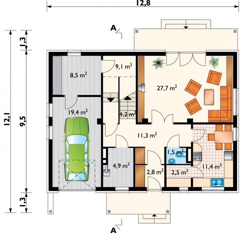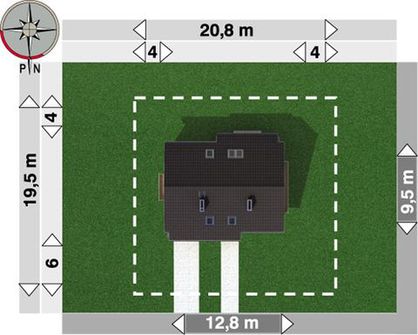 Graficzne opracowanie rzutów poglądowych widocznych na karcie projektu zostało wykonane przez Extradom.pl. Prezentowane przez Extradom.pl wizualizacje wykonane zostały przez autora projektu i należy poczytywać je jedynie za przykład i propozycję wykończenia, wizję architektoniczną autora projektu. Ostateczne wykończenie budynku może nastąpić na wiele sposobów. Szczegółowe rozwiązania zastosowane w oferowanej dokumentacji - w tym również ilość, lokalizacje i wygląd okien, drzwi, kominów - mogą w niewielkim stopniu różnić się od prezentowanej wizualizacji budynku.