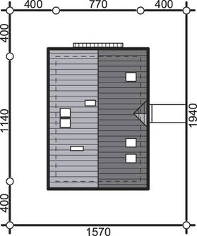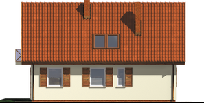 Graficzne opracowanie rzutów poglądowych widocznych na karcie projektu zostało wykonane przez Extradom.pl. Prezentowane przez Extradom.pl wizualizacje wykonane zostały przez autora projektu i należy poczytywać je jedynie za przykład i propozycję wykończenia, wizję architektoniczną autora projektu. Ostateczne wykończenie budynku może nastąpić na wiele sposobów. Szczegółowe rozwiązania zastosowane w oferowanej dokumentacji - w tym również ilość, lokalizacje i wygląd okien, drzwi, kominów - mogą w niewielkim stopniu różnić się od prezentowanej wizualizacji budynku.