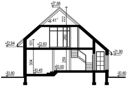 Ściany zewnętrzne: gr. 39 cm z pustaków ceramicznych MAX + wełna Rockwool. Strop: żelbetowy. Schody: żelbetowe. Dach: wielospadowy, o nachyleniu 41 stopni, więźba krokwiowo-kleszczowa, krycie dachówką. Poziom kalenicy: 8,68 m. Dodatkowe informacje: ogrzewanie: kocioł gazowy jednofunkcyjny z zasobnikiem c.w.u..