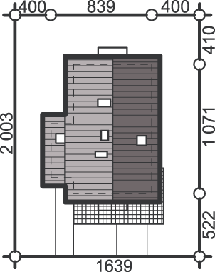 Ściany zewnętrzne: gr. 38 cm z pustaków ceramicznych POROTHERM. Strop: żelbetowy. Schody: żelbetowe. Dach: dwuspadowy, o nachyleniu 45 stopni, więźba krokwiowo-jętkowa, krycie dachówką. Poziom kalenicy: 8,51 m. Dodatkowe informacje: ogrzewanie: kocioł gazowy jednofunkcyjny z zasobnikiem c.w.u.