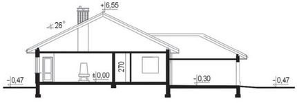 Ściany zewnętrzne: gr. 39 cm z pustaków ceramicznych + styropian. Strop: żelbetowy. Schody: żelbetowe. Dach: czterospadowy, o nachyleniu 26 stopni, więźba krokwiowo-płatwiowa, krycie dachówką. Poziom kalenicy: 7,02 m. Dodatkowe informacje: pow. użytkowa: + garaż 34,27.