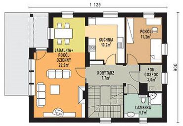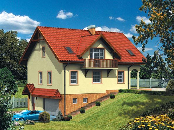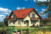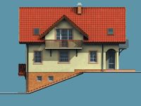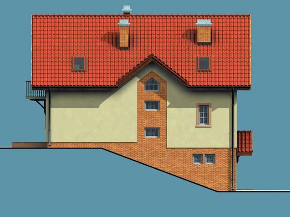 Graficzne opracowanie rzutów poglądowych widocznych na karcie projektu zostało wykonane przez Extradom.pl. Prezentowane przez Extradom.pl wizualizacje wykonane zostały przez autora projektu i należy poczytywać je jedynie za przykład i propozycję wykończenia, wizję architektoniczną autora projektu. Ostateczne wykończenie budynku może nastąpić na wiele sposobów. Szczegółowe rozwiązania zastosowane w oferowanej dokumentacji - w tym również ilość, lokalizacje i wygląd okien, drzwi, kominów - mogą w niewielkim stopniu różnić się od prezentowanej wizualizacji budynku.