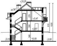 Ściany zewnętrzne: gr. 39 cm z pustaków ceramicznych + styropian. Strop: żelbetowy. Schody: żelbetowe. Dach: dwuspadowy, o nachyleniu 38 stopni, więźba płatwiowo-jętkowa, krycie dachówką. Poziom kalenicy: 10,2 m/7,95 m od poziomu terenu. Dodatkowe informacje: ogrzewanie: kocioł gazowy jednofunkcyjny z zasobnikiem c.w.u..