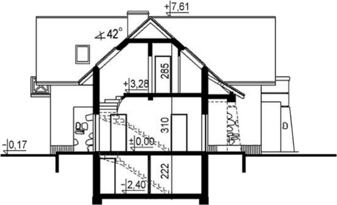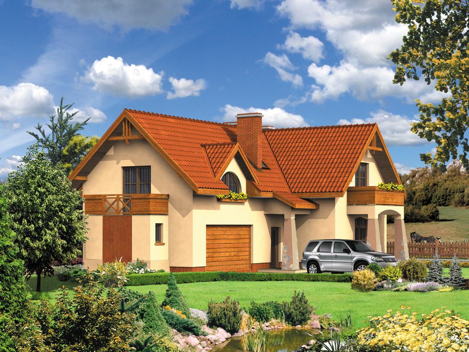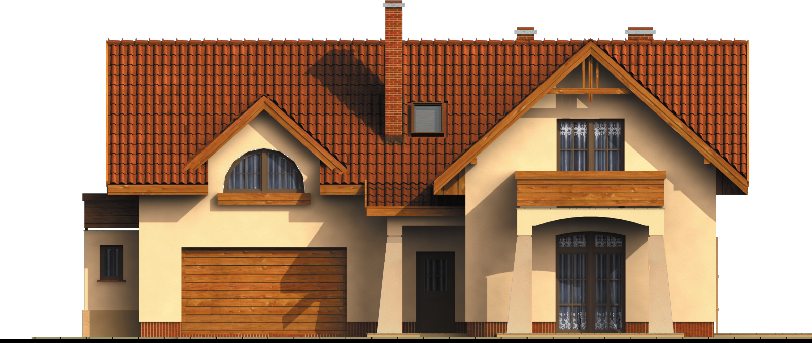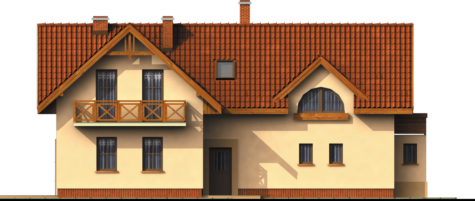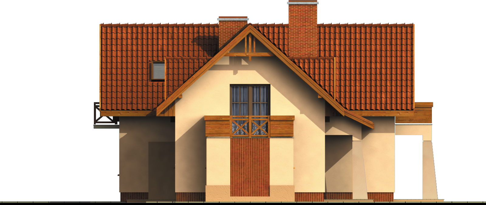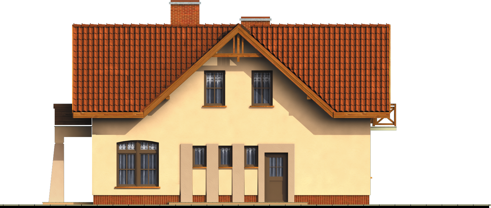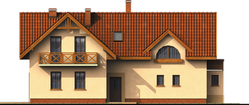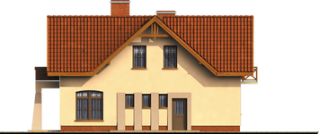 Graficzne opracowanie rzutów poglądowych widocznych na karcie projektu zostało wykonane przez Extradom.pl. Prezentowane przez Extradom.pl wizualizacje wykonane zostały przez autora projektu i należy poczytywać je jedynie za przykład i propozycję wykończenia, wizję architektoniczną autora projektu. Ostateczne wykończenie budynku może nastąpić na wiele sposobów. Szczegółowe rozwiązania zastosowane w oferowanej dokumentacji - w tym również ilość, lokalizacje i wygląd okien, drzwi, kominów - mogą w niewielkim stopniu różnić się od prezentowanej wizualizacji budynku.