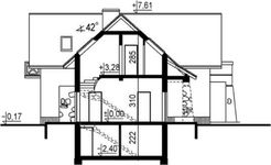 Ściany zewnętrzne: gr. 34 cm z pustaków ceramicznych + styropian. Strop: żelbetowy. Schody: żelbetowe. Dach: wielospadowy o nachyleniu 42 stopni, więźba krokwiowo-jętkowa, krycie dachówką. Poziom kalenicy: 7,78 m od terenu. Dodatkowe informacje: funcja usługowa np. sklep na parterze budynku; ogrzewanie; kocioł gazowy jednofunkcyjny z zasobnikiem c.w.u..