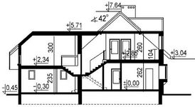 Ściany zewnętrzne: gr. 44 cm z bloczków ceramicznych POROTHERM. Strop: POROTHERM. Schody: żelbetowe. Dach: dwuspadowy z naczółkami o nachyleniu 42 stopni, więźba krokwiowo-jętkowa, krycie dachówką. Poziom kalenicy: 8,09 m od terenu. Dodatkowe informacje: ogrzewanie: kocioł gazowy jednofunkcyjny z zasobnikiem c.w.u.