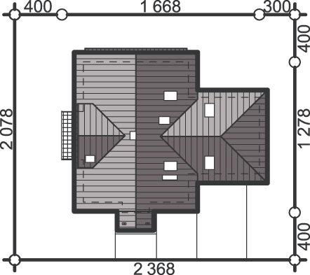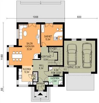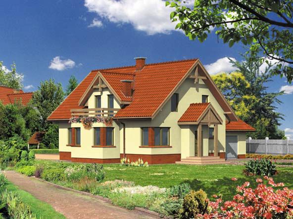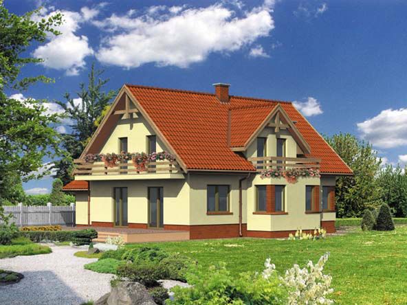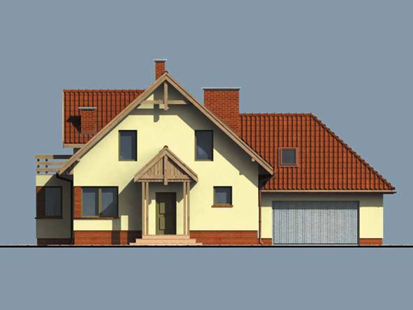 Graficzne opracowanie rzutów poglądowych widocznych na karcie projektu zostało wykonane przez Extradom.pl. Prezentowane przez Extradom.pl wizualizacje wykonane zostały przez autora projektu i należy poczytywać je jedynie za przykład i propozycję wykończenia, wizję architektoniczną autora projektu. Ostateczne wykończenie budynku może nastąpić na wiele sposobów. Szczegółowe rozwiązania zastosowane w oferowanej dokumentacji - w tym również ilość, lokalizacje i wygląd okien, drzwi, kominów - mogą w niewielkim stopniu różnić się od prezentowanej wizualizacji budynku.