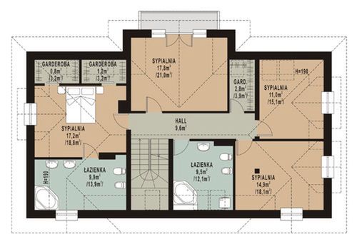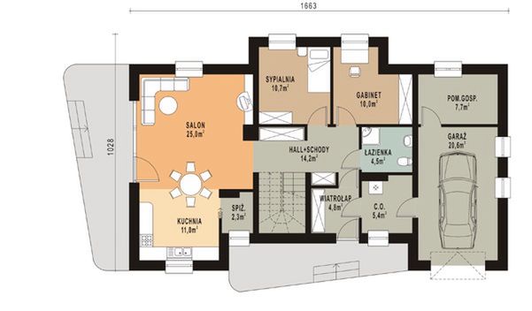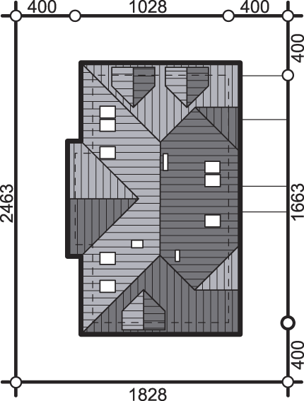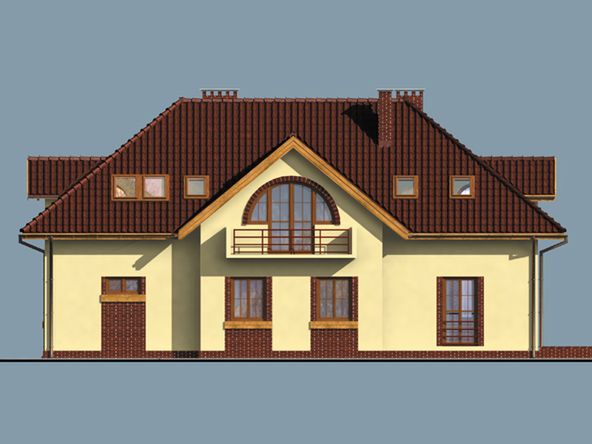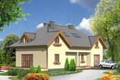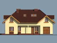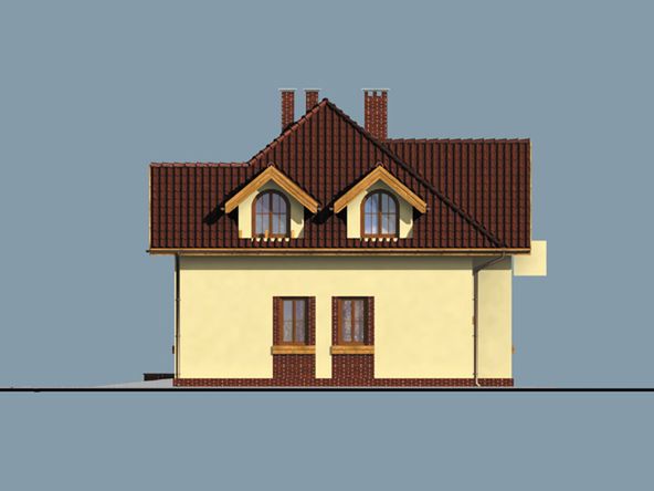 Graficzne opracowanie rzutów poglądowych widocznych na karcie projektu zostało wykonane przez Extradom.pl. Prezentowane przez Extradom.pl wizualizacje wykonane zostały przez autora projektu i należy poczytywać je jedynie za przykład i propozycję wykończenia, wizję architektoniczną autora projektu. Ostateczne wykończenie budynku może nastąpić na wiele sposobów. Szczegółowe rozwiązania zastosowane w oferowanej dokumentacji - w tym również ilość, lokalizacje i wygląd okien, drzwi, kominów - mogą w niewielkim stopniu różnić się od prezentowanej wizualizacji budynku.