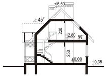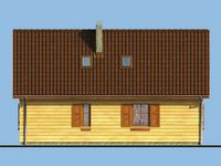 Ściany zewnętrzne: gr. 26 cm szkieletowe drewniane ocieplone wełną mineralną. Strop: drewniany. Schody: drewniane. Dach: dwuspadowy o nachyleniu 45 stopni, kryty blachą dachówkopodobną. Poziom kalenicy: 6,94 m od terenu. Dodatkowe informacje: ogrzewanie: kocioł gazowy dwufunkcyjny.