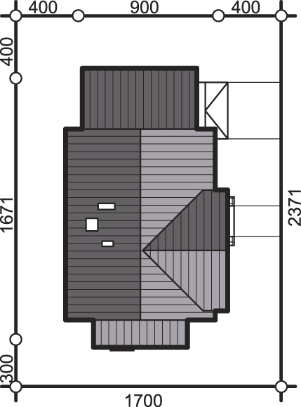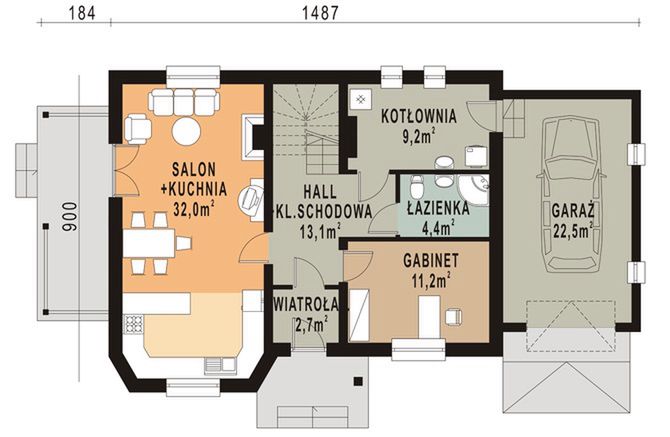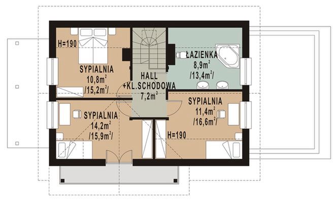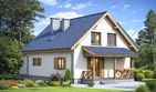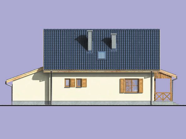 Graficzne opracowanie rzutów poglądowych widocznych na karcie projektu zostało wykonane przez Extradom.pl. Prezentowane przez Extradom.pl wizualizacje wykonane zostały przez autora projektu i należy poczytywać je jedynie za przykład i propozycję wykończenia, wizję architektoniczną autora projektu. Ostateczne wykończenie budynku może nastąpić na wiele sposobów. Szczegółowe rozwiązania zastosowane w oferowanej dokumentacji - w tym również ilość, lokalizacje i wygląd okien, drzwi, kominów - mogą w niewielkim stopniu różnić się od prezentowanej wizualizacji budynku.