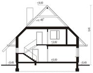 Ściany zewnętrzne: gr. 38 cm z pustaków ceramicznych + styropian. Strop: DZ-3. Schody: żelbetowe. Dach: dwuspadowy o nachyleniu 45 stopni, więźba krokwiowo-płatwiowa, krycie dachówką. Poziom kalenicy: 9,45 m od terenu. Dodatkowe informacje: ogrzewanie: kocioł gazowy.
