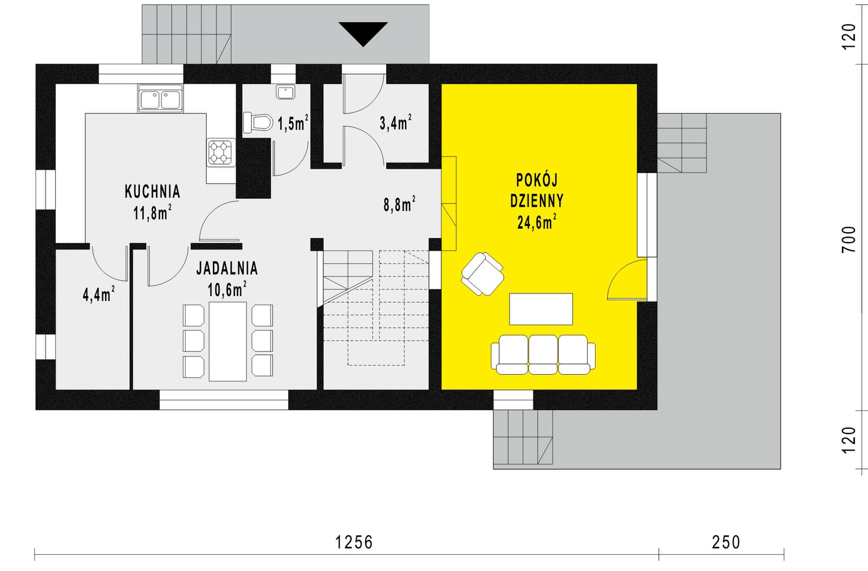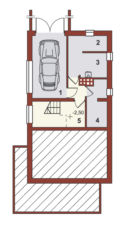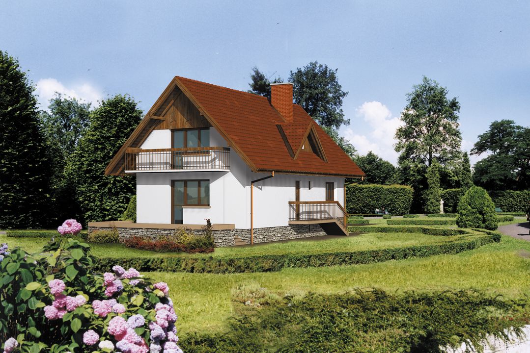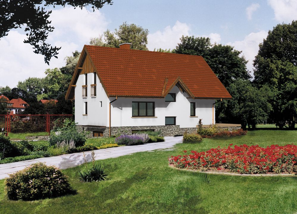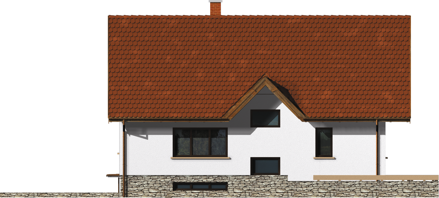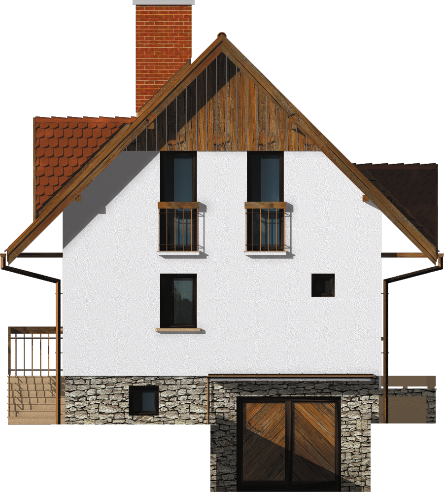 Graficzne opracowanie rzutów poglądowych widocznych na karcie projektu zostało wykonane przez Extradom.pl. Prezentowane przez Extradom.pl wizualizacje wykonane zostały przez autora projektu i należy poczytywać je jedynie za przykład i propozycję wykończenia, wizję architektoniczną autora projektu. Ostateczne wykończenie budynku może nastąpić na wiele sposobów. Szczegółowe rozwiązania zastosowane w oferowanej dokumentacji - w tym również ilość, lokalizacje i wygląd okien, drzwi, kominów - mogą w niewielkim stopniu różnić się od prezentowanej wizualizacji budynku.