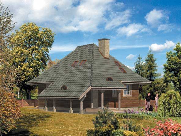 Wybierając projekt szukaliśmy budynku, który pierwotnie miał nam służyć jako domek letniskowy. Projekt domu parterowego z poddaszem użytkowym WB-3388 KRA3504 po prostu nam się spodobał, więc zdecydowaliśmy się na jego zakup. W trakcie zaszły u nas jednak pewne zmiany i musieliśmy zastosować w nim kilka zmian, tak aby pełnił on rolę budynku całorocznego.Podczas realizacji nie mieliśmy na szczęście żadnych problemów i właściwie przeprowadziliśmy się szybciej niż było to planowane. Postanowiliśmy nie zmieniać przewidzianej technologi budowy. Zgodnie z wytycznymi całość została wykonana z drewnianych belek, aczkolwiek widziałem w okolicy kilka takich samych domów zrobionych w wersji murowanej.Aby dostosować projekt domu WB-3388 KRA3504 do pełnienia funkcji budynku całorocznego, musieliśmy rozprowadzić w nim centralne ogrzewanie. Jako domek letniskowy miał tylko kominek, jednak my zdecydowaliśmy się na instalację dwufunkcyjnego piecyka gazowego, który z powodzeniem ogrzewa wszystkie pomieszczenia. W kuchni wstawiliśmy jeszcze jedno okno, a wejście na taras zostało powiększone. Zmieniliśmy lokalizację klatki schodowej i przenieśliśmy ją do salonu. Musze przyznać, iż prezentuje się to bardzo dobrze, a dodatkowo na poddaszu jest cieplej, gdyż chłodniejsze powietrze z przedpokoju nie dostaje się do górnych pomieszczeń. Oprócz tych zmian postanowiliśmy jeszcze doprojektować piwnicę.Jesteśmy 4-osobową rodziną i przy tym metrażu miejsca wystarczy dla każdego. Na chwilę obecną żałuję jednak, iż nie wydzieliliśmy w salonie miejsca na dodatkowy pokój na parterze. Nie ukrywam, iż bardzo by się nam przydał, ponieważ mamy z żoną małe dzieci. Gdy kładziemy któreś z nich spać, a ono się przebudza musimy biec do niego po schodach na górę, co jest nieco uciążliwe. Myślę, że naprawdę warto rozważyć to rozwiązanie, gdyż salon jest bardzo duży i bez problemu można wydzielić część jego powierzchni na zrobienie 10m2 pokoju.Dom wybudowany według projektu WB-3388 KRA3504 jest funkcjonalny i ciepły, a jego metraż odpowiada potrzebom naszej rodziny. Mieszkamy w nim już przeszło 4 lata i wszystko jest w porządku, chociaż teraz wybrałbym pewnie budynek parterowy. Pozdrawiam.
