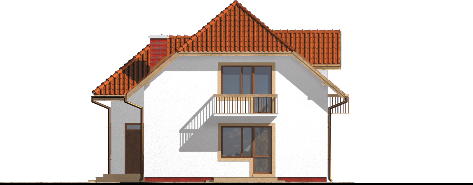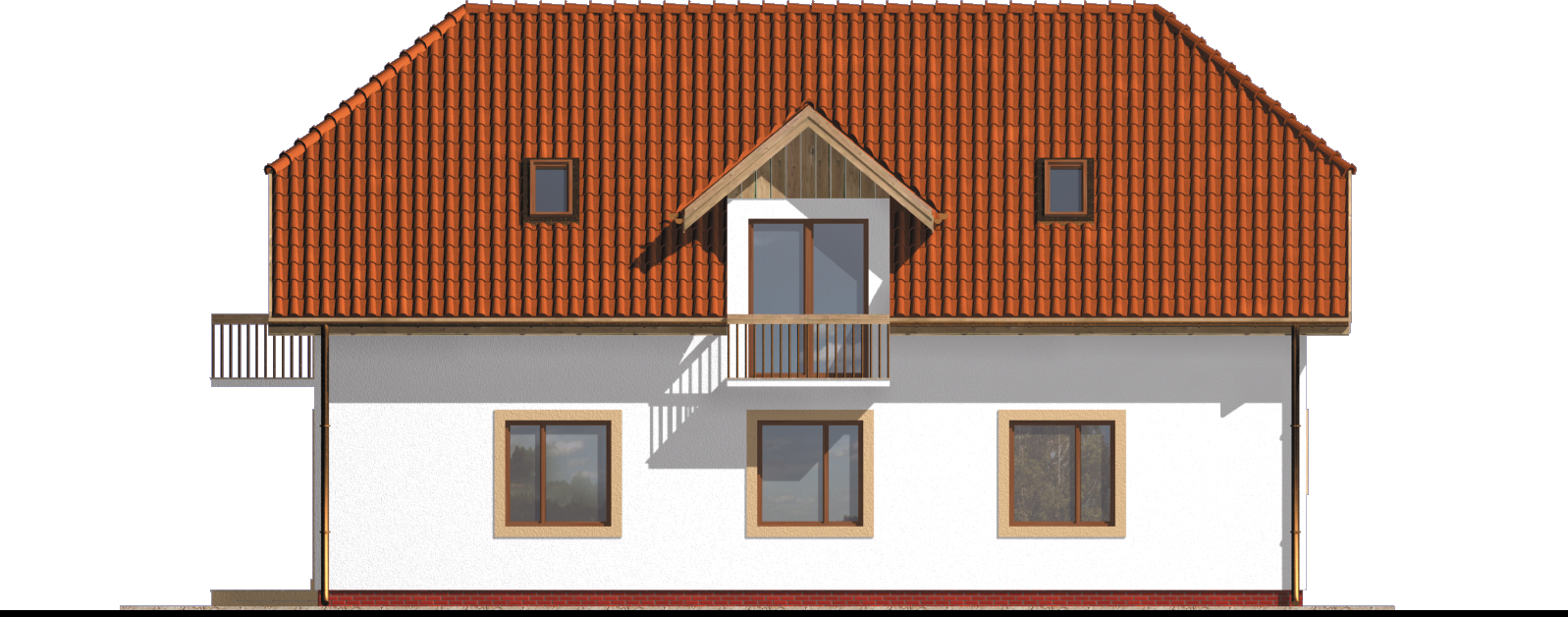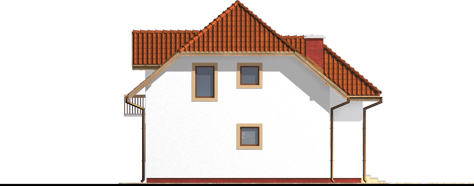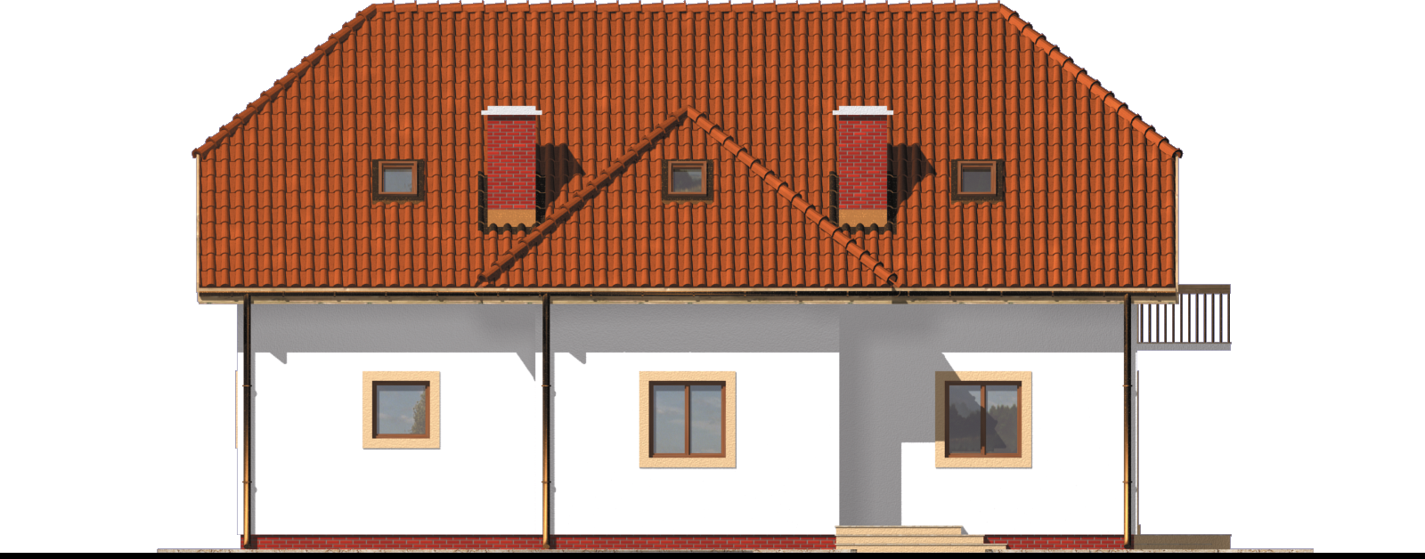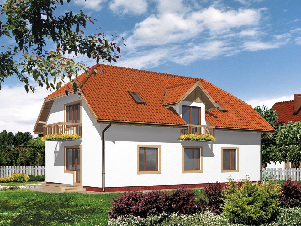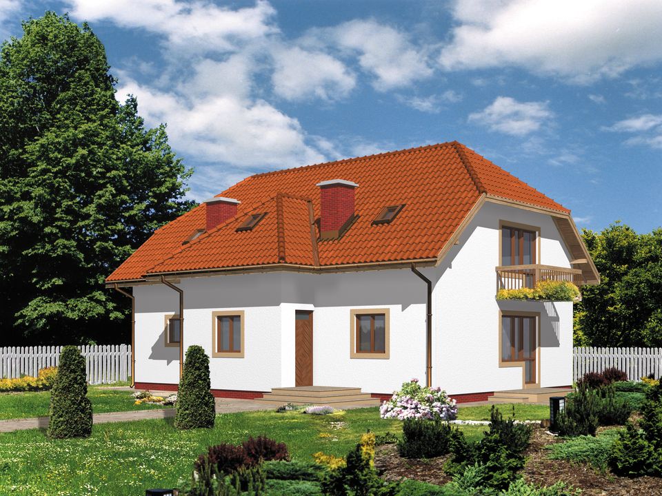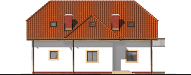 Graficzne opracowanie rzutów poglądowych widocznych na karcie projektu zostało wykonane przez Extradom.pl. Prezentowane przez Extradom.pl wizualizacje wykonane zostały przez autora projektu i należy poczytywać je jedynie za przykład i propozycję wykończenia, wizję architektoniczną autora projektu. Ostateczne wykończenie budynku może nastąpić na wiele sposobów. Szczegółowe rozwiązania zastosowane w oferowanej dokumentacji - w tym również ilość, lokalizacje i wygląd okien, drzwi, kominów - mogą w niewielkim stopniu różnić się od prezentowanej wizualizacji budynku.