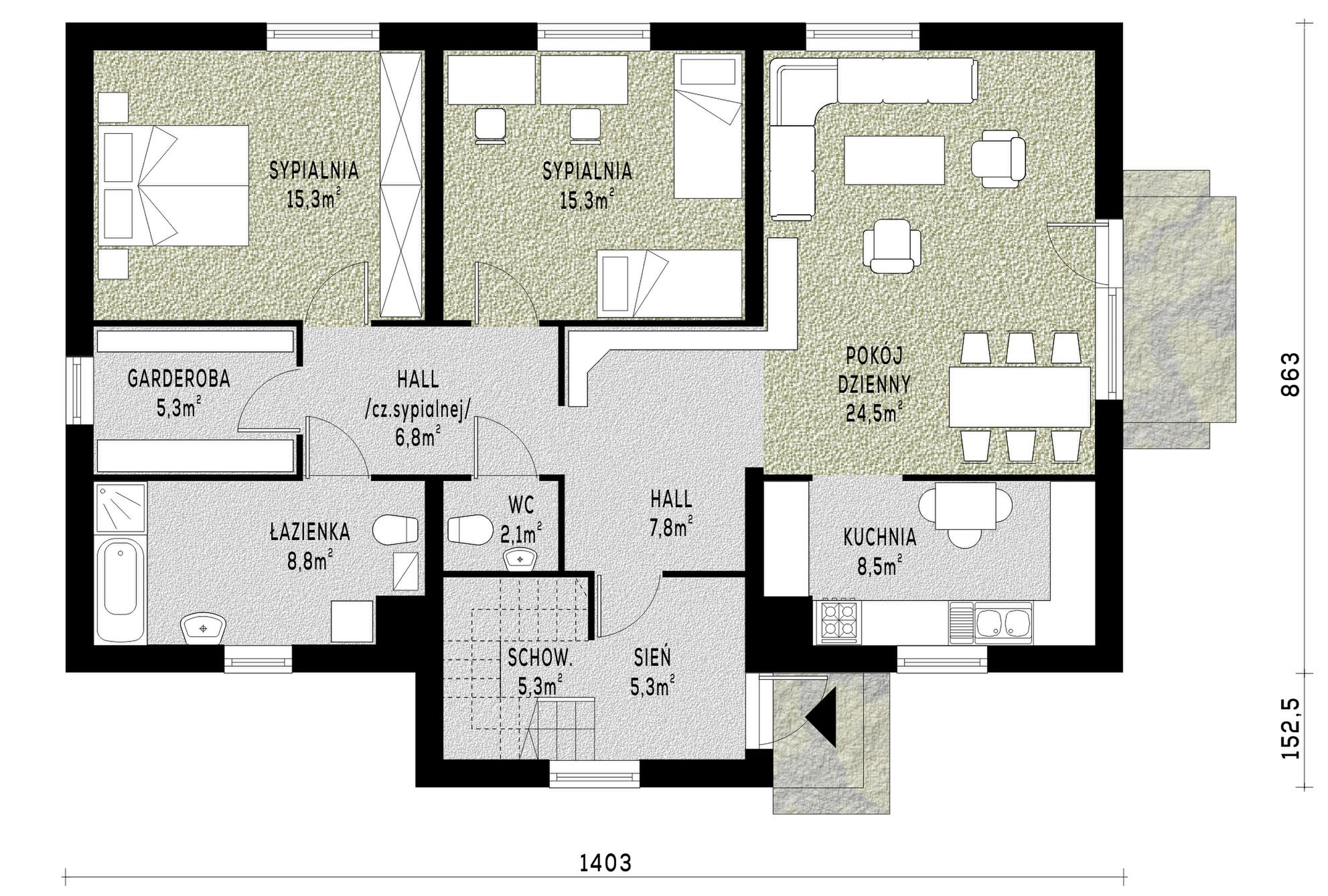 PROJEKT Z BUDOWĄ Istnieje możliwość zaadaptowania tego projektu do technologii prefabrykowanej/modułowej i budowy nawet w 6 miesięcy ze stałym kosztem budowy