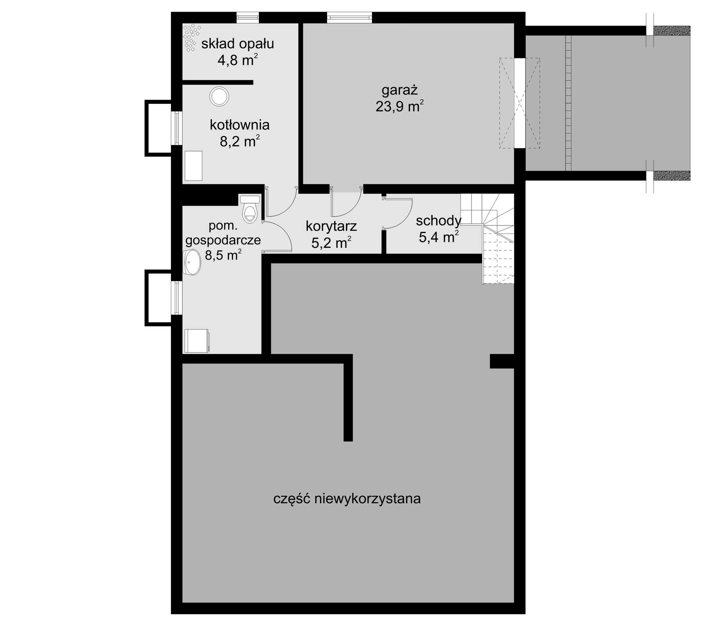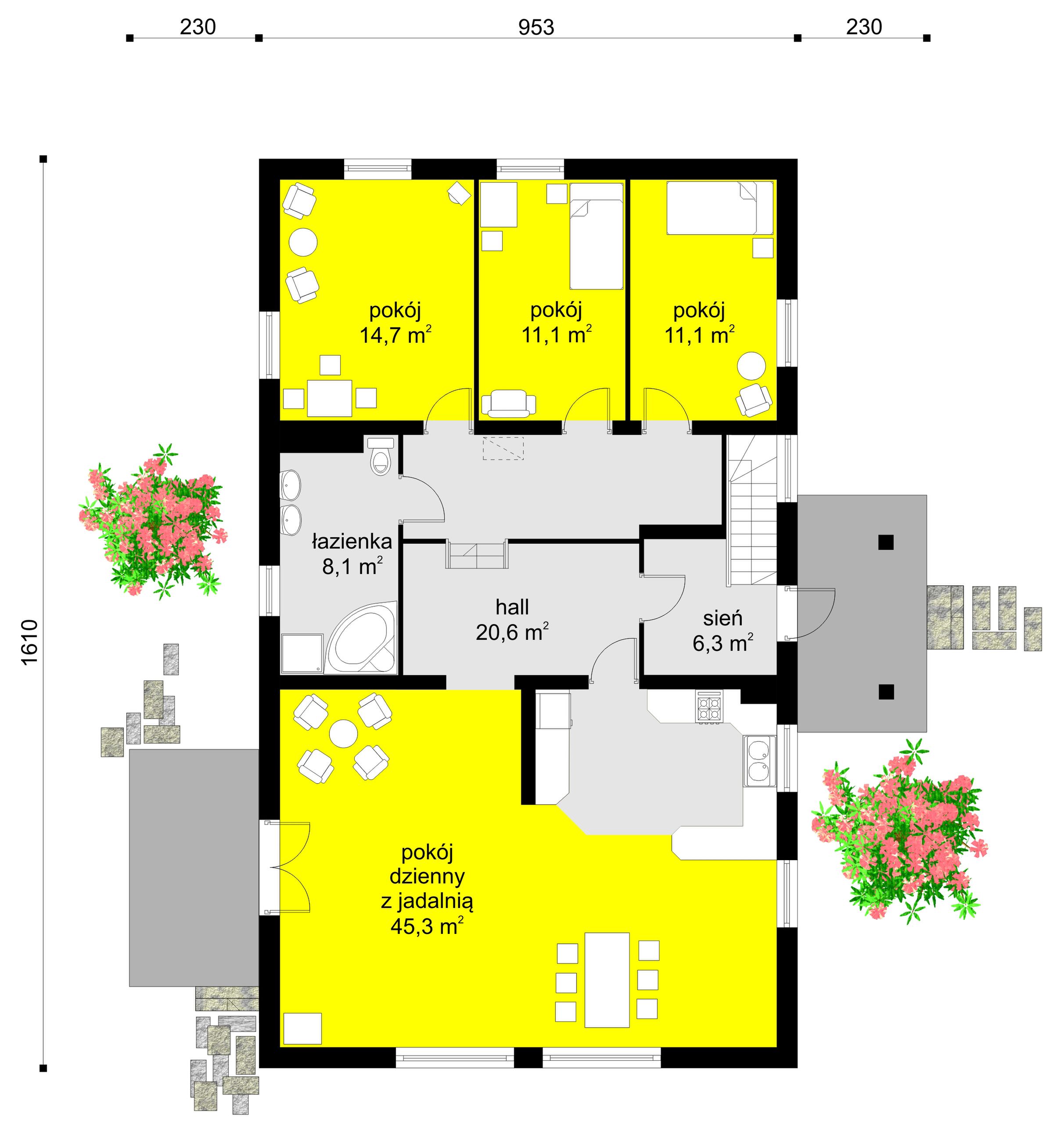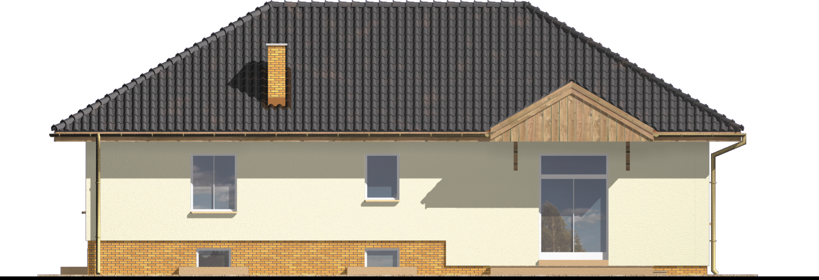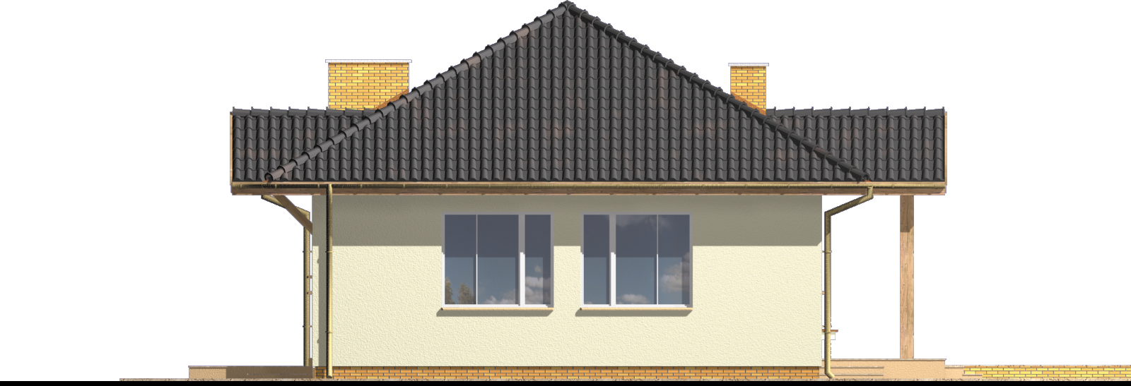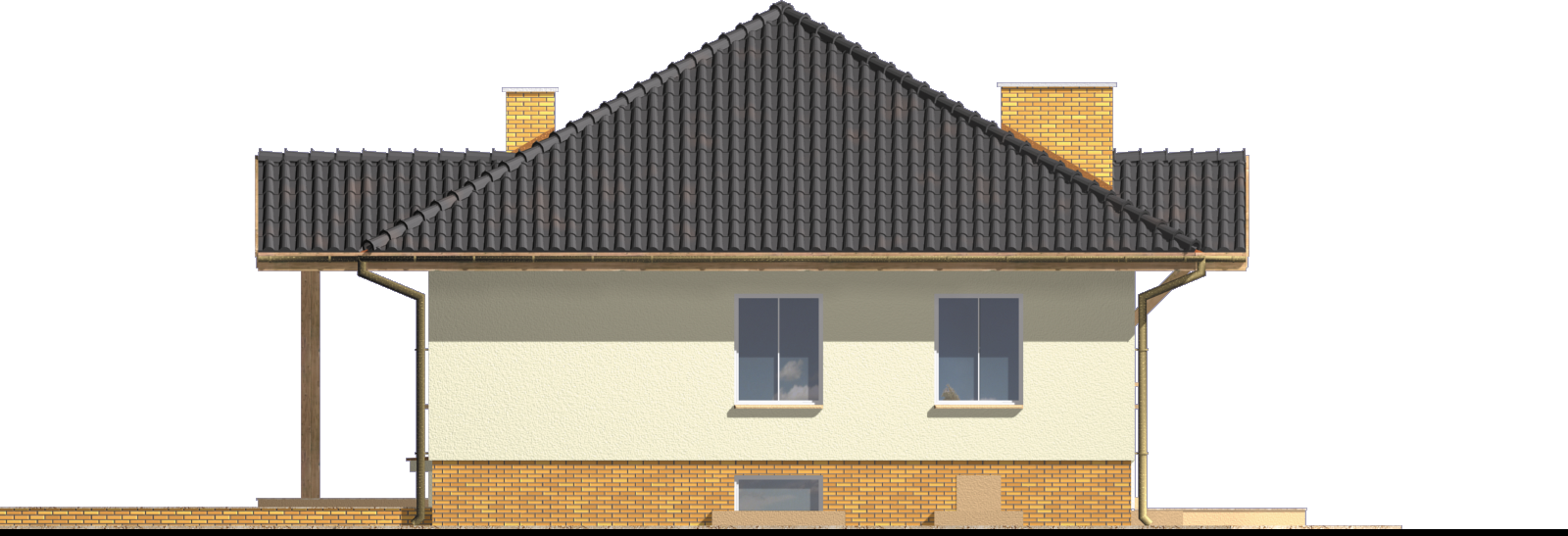Graficzne opracowanie rzutów poglądowych widocznych na karcie projektu zostało wykonane przez Extradom.pl. Prezentowane przez Extradom.pl wizualizacje wykonane zostały przez autora projektu i należy poczytywać je jedynie za przykład i propozycję wykończenia, wizję architektoniczną autora projektu. Ostateczne wykończenie budynku może nastąpić na wiele sposobów. Szczegółowe rozwiązania zastosowane w oferowanej dokumentacji - w tym również ilość, lokalizacje i wygląd okien, drzwi, kominów - mogą w niewielkim stopniu różnić się od prezentowanej wizualizacji budynku.