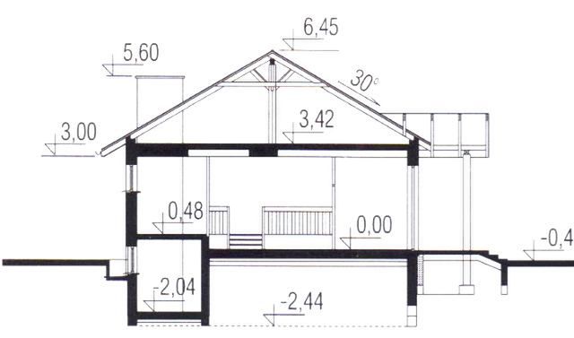 Ściany zewnętrzne: grubość 36,5 cm z bloczków YTONG. Strop: nad piwnicą - płyta żelbetowa, nad parterem - FERT. Schody: żelbetowe. Dach: czterospadowy o nachyleniu 30 stopni, więźba drewniana, krycie dachówką ceramiczną. Poziom kalenicy: 6,90 m od terenu.