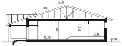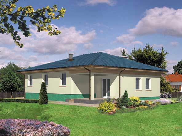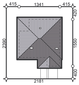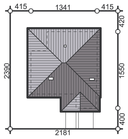 Ściany zewnętrzne: grubość 38 cm z pustaków ceramicznych. Dach: czterospadowy o nachyleniu 18 stopni i 23 stopnie, więźba drewniana, krokwiowo-kleszczowa, krycie dachówką bitumiczną. Poziom kalenicy: 6 m od terenu. Dodatkowe informacje: alternatywnie - powierzchnia netto: 179 m2, kubatura: 818 m3.