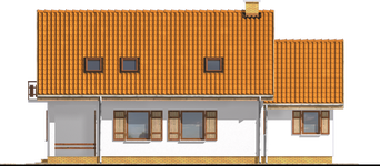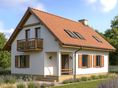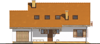 Graficzne opracowanie rzutów poglądowych widocznych na karcie projektu zostało wykonane przez Extradom.pl. Prezentowane przez Extradom.pl wizualizacje wykonane zostały przez autora projektu i należy poczytywać je jedynie za przykład i propozycję wykończenia, wizję architektoniczną autora projektu. Ostateczne wykończenie budynku może nastąpić na wiele sposobów. Szczegółowe rozwiązania zastosowane w oferowanej dokumentacji - w tym również ilość, lokalizacje i wygląd okien, drzwi, kominów - mogą w niewielkim stopniu różnić się od prezentowanej wizualizacji budynku.
