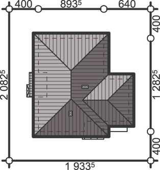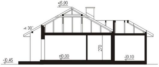 Ściany zewnętrzne: grubość 36,5 cm z bloczków YTONG, w garażu grubość 20 cm z bloczków YTONG. Strop: drewniany belkowy oparty na ścianach zewnętrznych i podciągach żelbetowych. Dach: czterospadowy o nachyleniu 30 stopni, więźba drewniana płatwiowo-jętkowa, krycie dachówką cementową firmy BRAAS lub dachówką ceramiczną. Poziom kalenicy: 7,35 m od terenu.