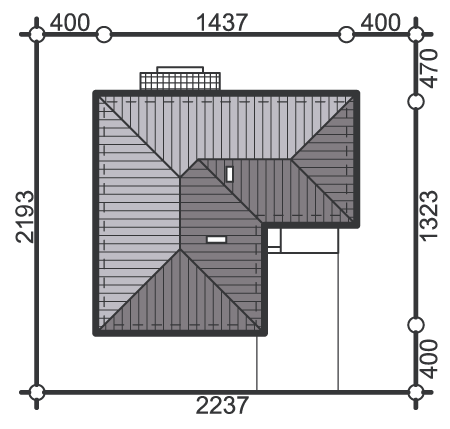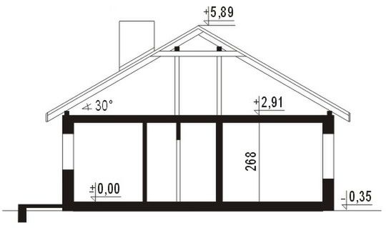 Ściany zewnętrzne: gr. 36,5 cm z bloczków YTONG. Strop: drewniany, ocieplany wełną mineralną. Dach: czterospadowy o nachyleniu 30 stopni, więźba drewniana krokwiowo-płatwiowa, krycie dachówką bitumiczną w kolorze terekota. Poziom kalenicy: 6,24 m od terenu.