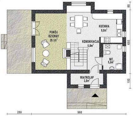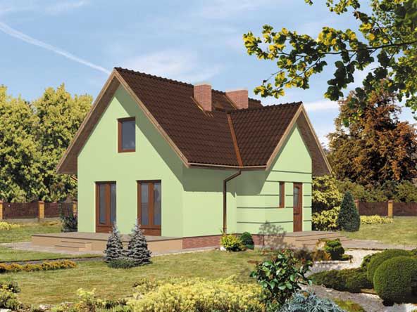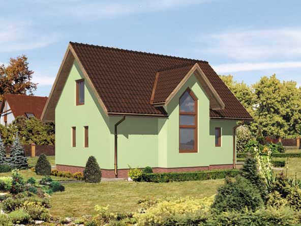 Graficzne opracowanie rzutów poglądowych widocznych na karcie projektu zostało wykonane przez Extradom.pl. Prezentowane przez Extradom.pl wizualizacje wykonane zostały przez autora projektu i należy poczytywać je jedynie za przykład i propozycję wykończenia, wizję architektoniczną autora projektu. Ostateczne wykończenie budynku może nastąpić na wiele sposobów. Szczegółowe rozwiązania zastosowane w oferowanej dokumentacji - w tym również ilość, lokalizacje i wygląd okien, drzwi, kominów - mogą w niewielkim stopniu różnić się od prezentowanej wizualizacji budynku.
