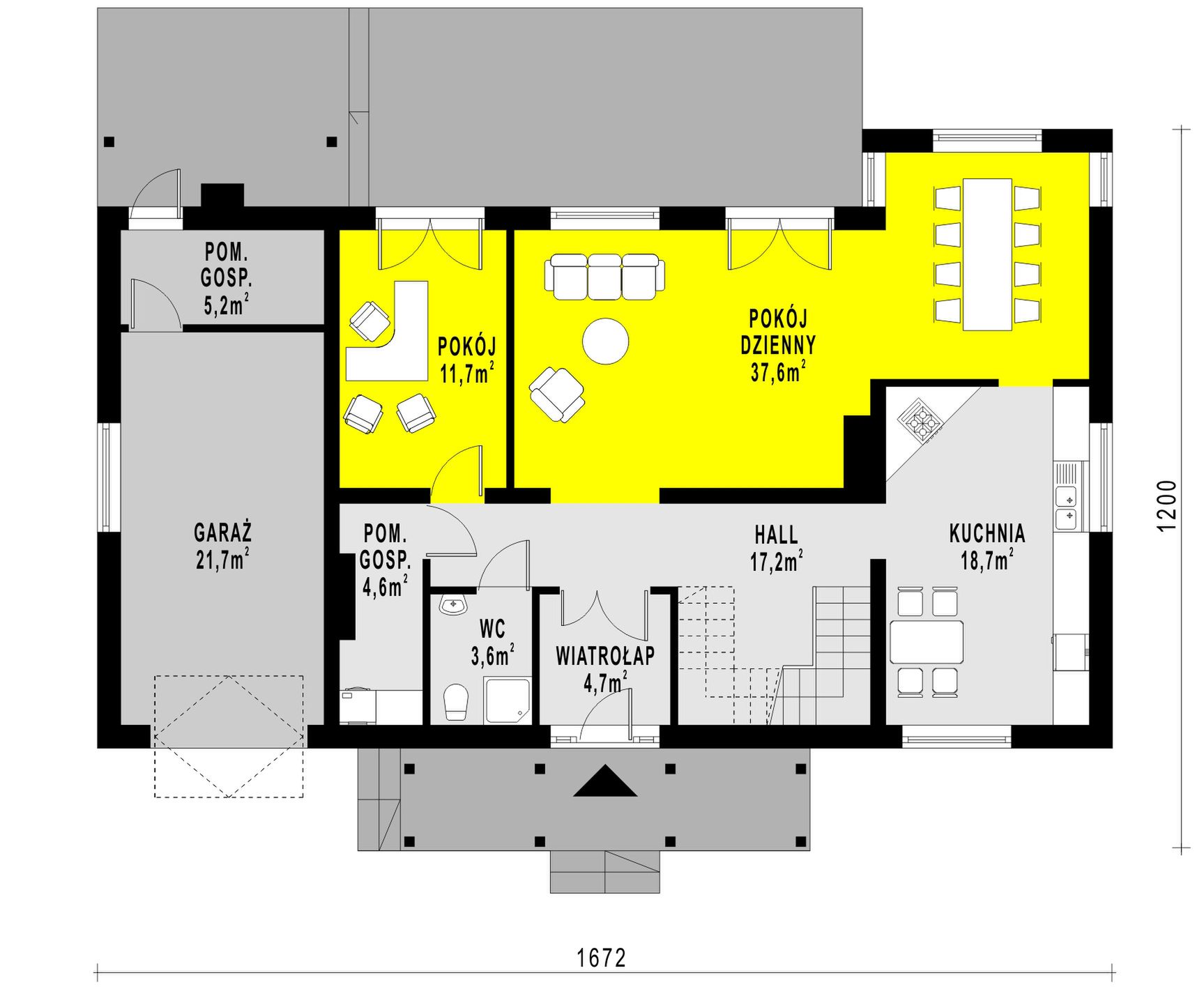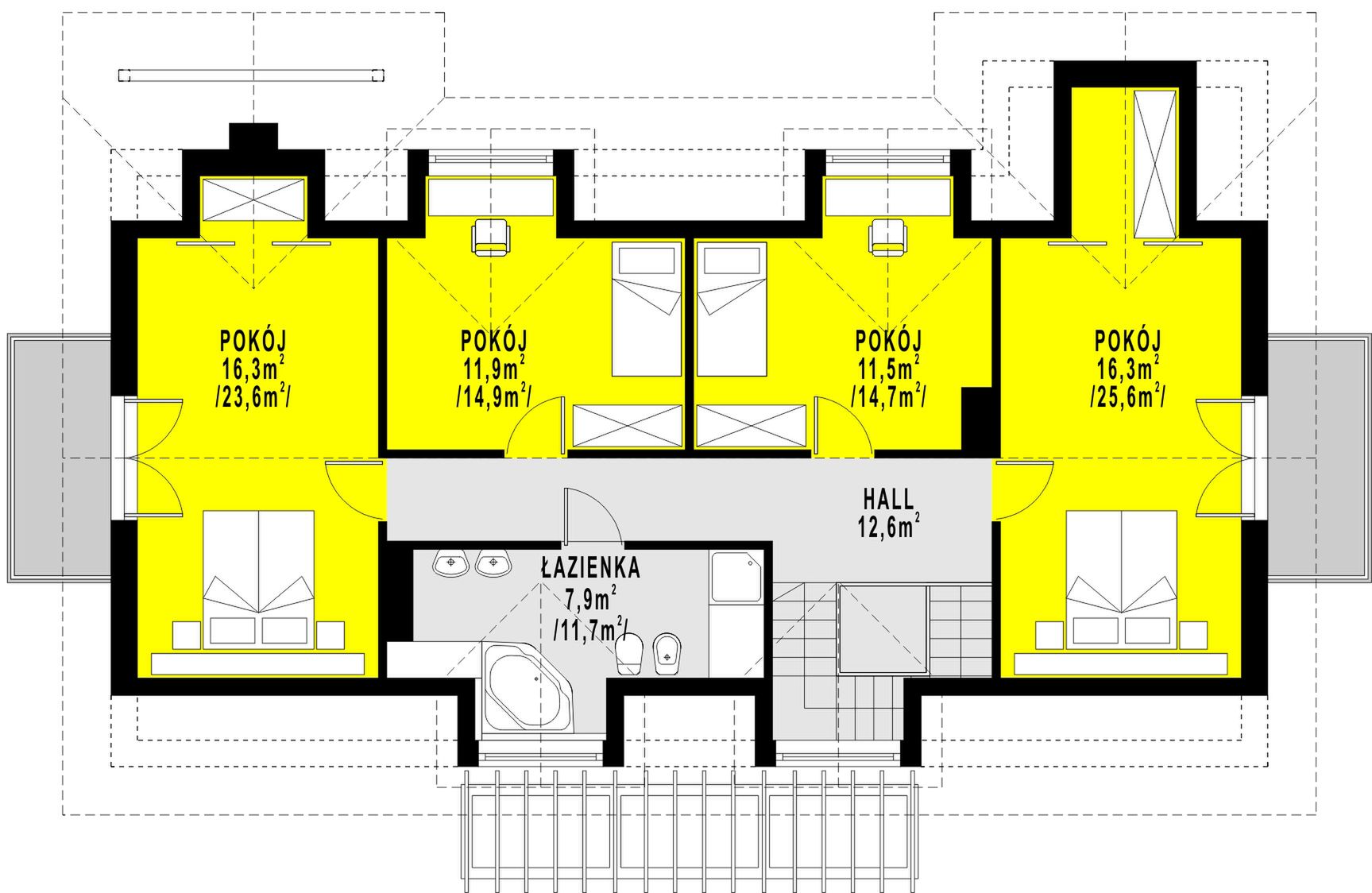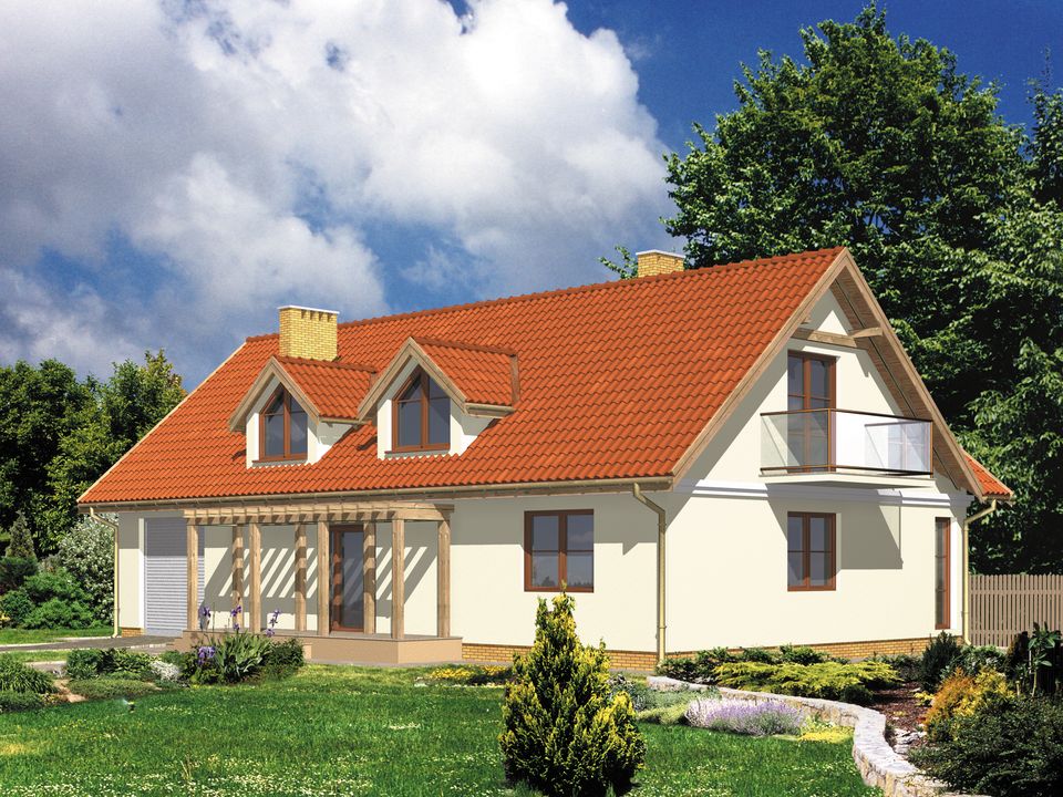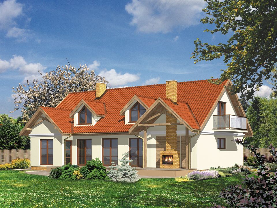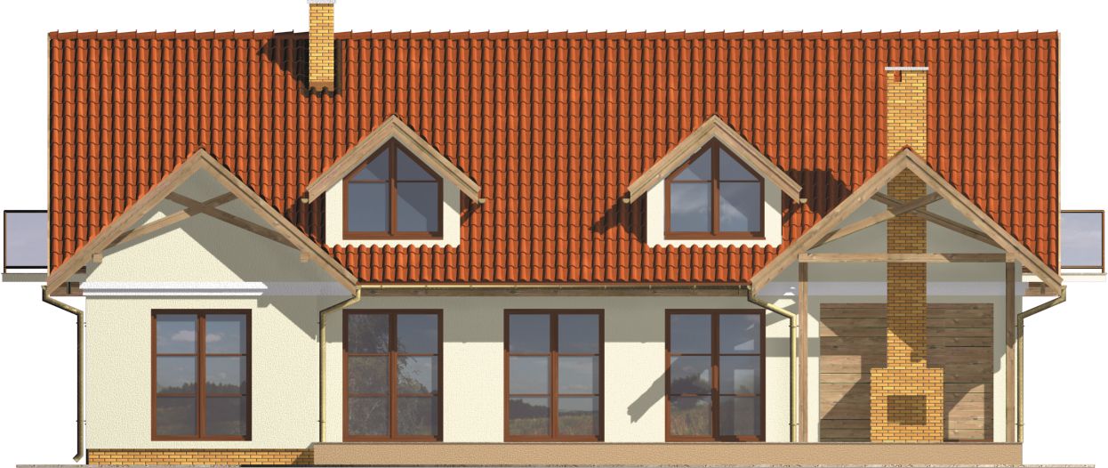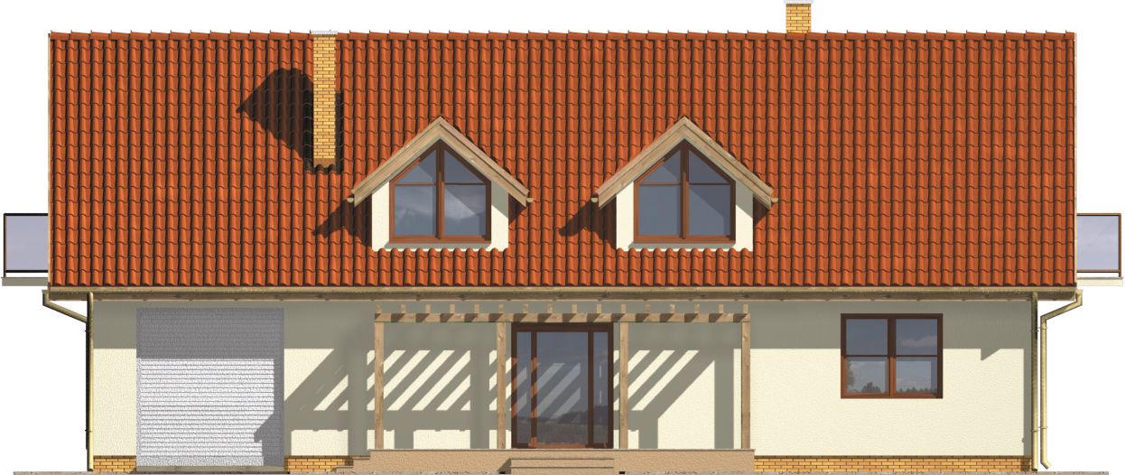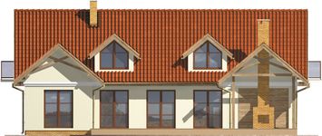 Graficzne opracowanie rzutów poglądowych widocznych na karcie projektu zostało wykonane przez Extradom.pl. Prezentowane przez Extradom.pl wizualizacje wykonane zostały przez autora projektu i należy poczytywać je jedynie za przykład i propozycję wykończenia, wizję architektoniczną autora projektu. Ostateczne wykończenie budynku może nastąpić na wiele sposobów. Szczegółowe rozwiązania zastosowane w oferowanej dokumentacji - w tym również ilość, lokalizacje i wygląd okien, drzwi, kominów - mogą w niewielkim stopniu różnić się od prezentowanej wizualizacji budynku.