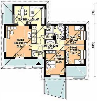 Graficzne opracowanie rzutów poglądowych widocznych na karcie projektu zostało wykonane przez Extradom.pl. Prezentowane przez Extradom.pl wizualizacje wykonane zostały przez autora projektu i należy poczytywać je jedynie za przykład i propozycję wykończenia, wizję architektoniczną autora projektu. Ostateczne wykończenie budynku może nastąpić na wiele sposobów. Szczegółowe rozwiązania zastosowane w oferowanej dokumentacji - w tym również ilość, lokalizacje i wygląd okien, drzwi, kominów - mogą w niewielkim stopniu różnić się od prezentowanej wizualizacji budynku.