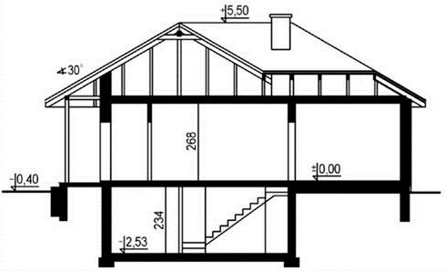 Ściany zewnętrzne: gr. 36,5 cm z bloczków YTONG. Strop: żelbetowy. Schody: żelbetowe. Dach: dwuspadowy o nachyleniu 30 stopni, więźba krokwiowo-płatwiowa, krycie dachówką cementową lub ceramiczną. Poziom kalenicy: 5,90 m od terenu.