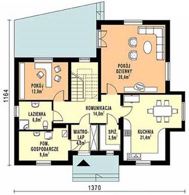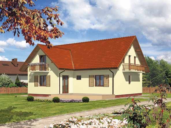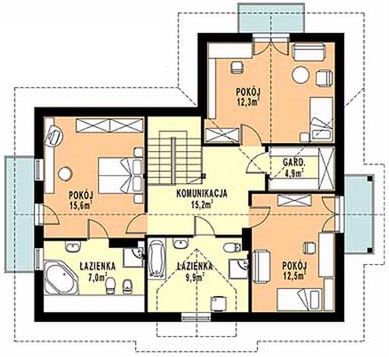 Graficzne opracowanie rzutów poglądowych widocznych na karcie projektu zostało wykonane przez Extradom.pl. Prezentowane przez Extradom.pl wizualizacje wykonane zostały przez autora projektu i należy poczytywać je jedynie za przykład i propozycję wykończenia, wizję architektoniczną autora projektu. Ostateczne wykończenie budynku może nastąpić na wiele sposobów. Szczegółowe rozwiązania zastosowane w oferowanej dokumentacji - w tym również ilość, lokalizacje i wygląd okien, drzwi, kominów - mogą w niewielkim stopniu różnić się od prezentowanej wizualizacji budynku.