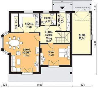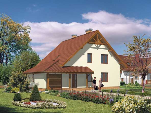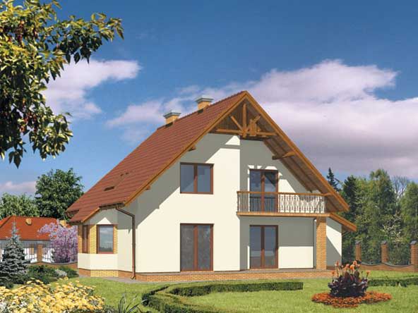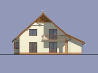 Graficzne opracowanie rzutów poglądowych widocznych na karcie projektu zostało wykonane przez Extradom.pl. Prezentowane przez Extradom.pl wizualizacje wykonane zostały przez autora projektu i należy poczytywać je jedynie za przykład i propozycję wykończenia, wizję architektoniczną autora projektu. Ostateczne wykończenie budynku może nastąpić na wiele sposobów. Szczegółowe rozwiązania zastosowane w oferowanej dokumentacji - w tym również ilość, lokalizacje i wygląd okien, drzwi, kominów - mogą w niewielkim stopniu różnić się od prezentowanej wizualizacji budynku.
