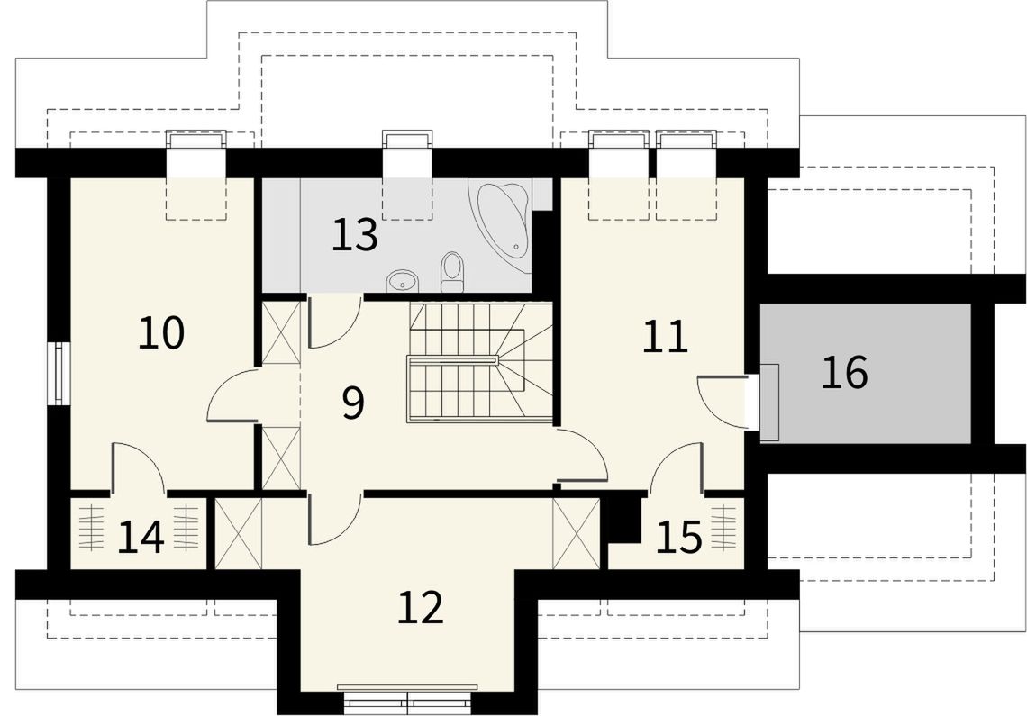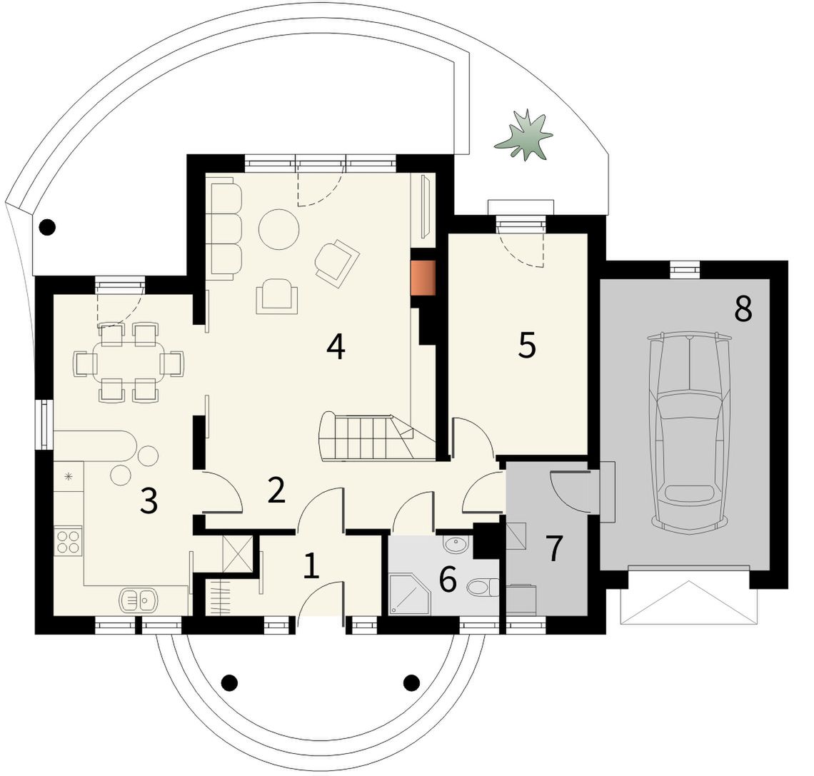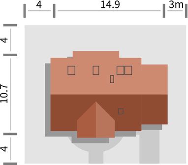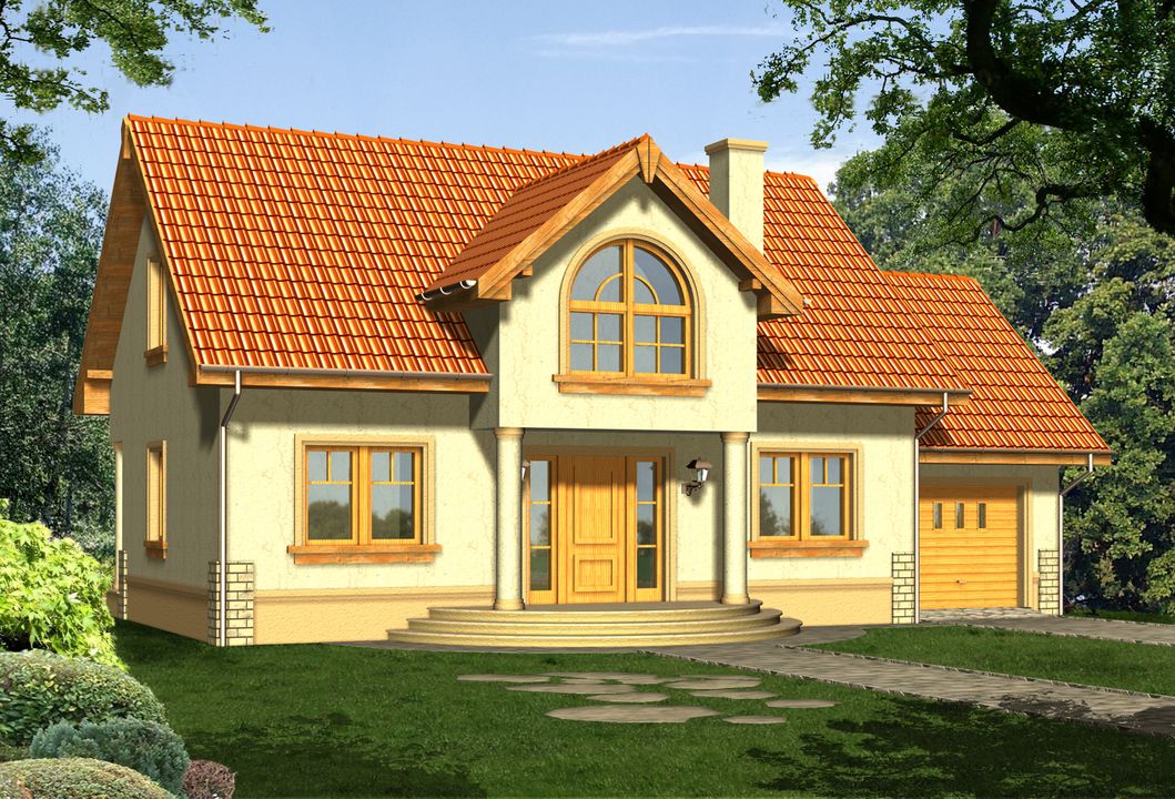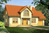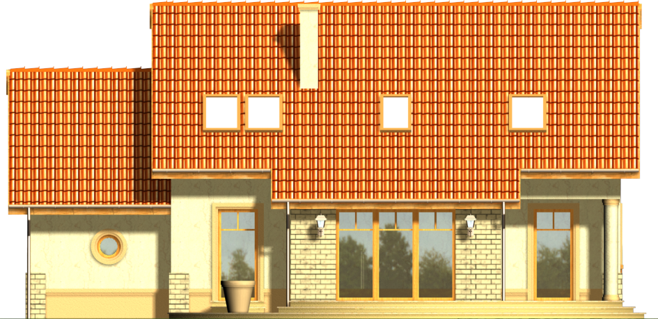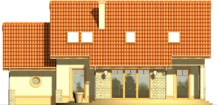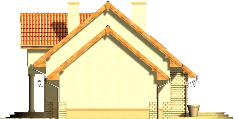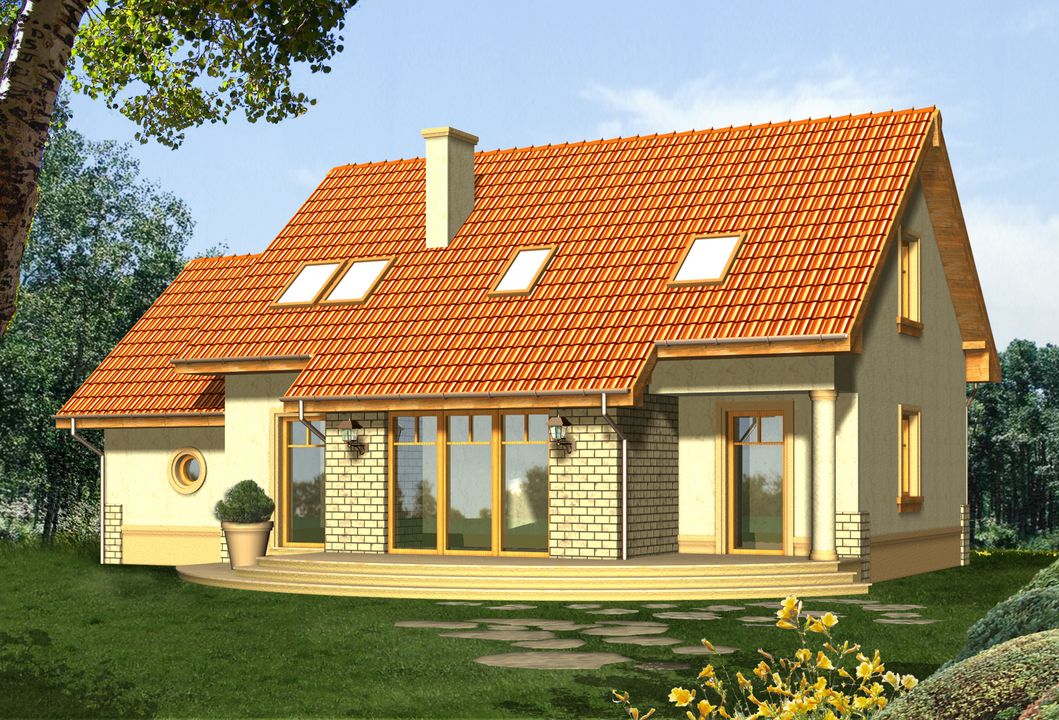 Graficzne opracowanie rzutów poglądowych widocznych na karcie projektu zostało wykonane przez Extradom.pl. Prezentowane przez Extradom.pl wizualizacje wykonane zostały przez autora projektu i należy poczytywać je jedynie za przykład i propozycję wykończenia, wizję architektoniczną autora projektu. Ostateczne wykończenie budynku może nastąpić na wiele sposobów. Szczegółowe rozwiązania zastosowane w oferowanej dokumentacji - w tym również ilość, lokalizacje i wygląd okien, drzwi, kominów - mogą w niewielkim stopniu różnić się od prezentowanej wizualizacji budynku.