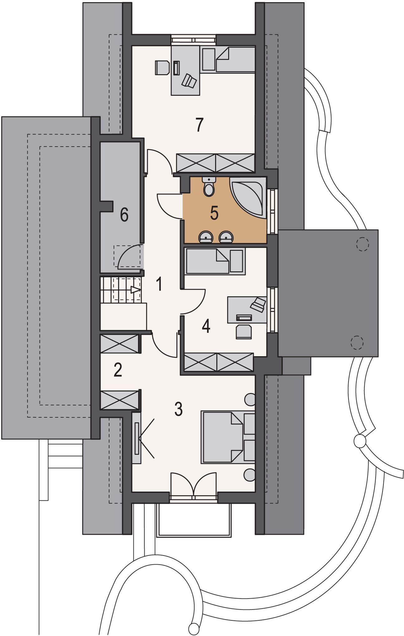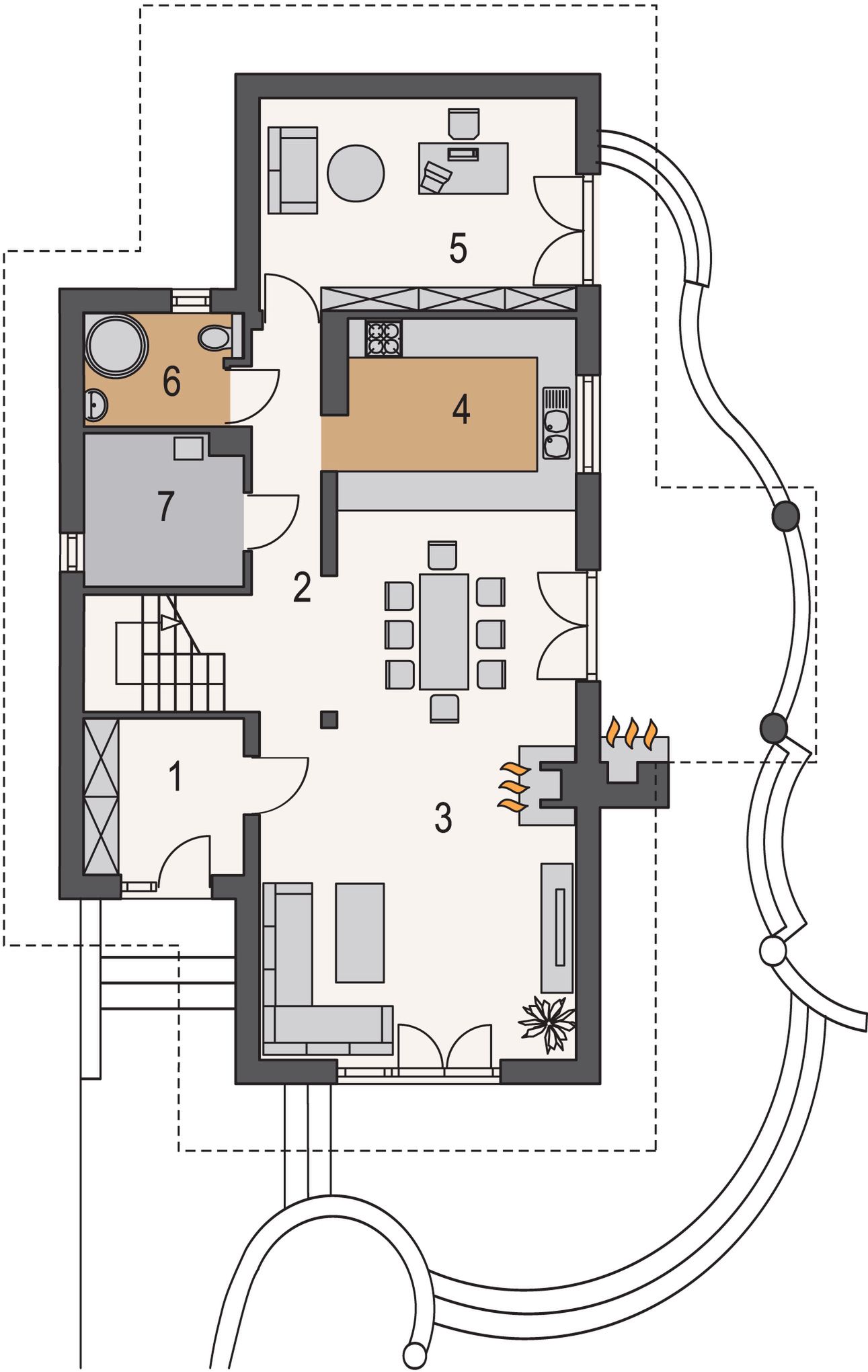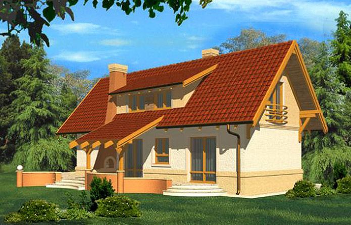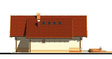 Graficzne opracowanie rzutów poglądowych widocznych na karcie projektu zostało wykonane przez Extradom.pl. Prezentowane przez Extradom.pl wizualizacje wykonane zostały przez autora projektu i należy poczytywać je jedynie za przykład i propozycję wykończenia, wizję architektoniczną autora projektu. Ostateczne wykończenie budynku może nastąpić na wiele sposobów. Szczegółowe rozwiązania zastosowane w oferowanej dokumentacji - w tym również ilość, lokalizacje i wygląd okien, drzwi, kominów - mogą w niewielkim stopniu różnić się od prezentowanej wizualizacji budynku.