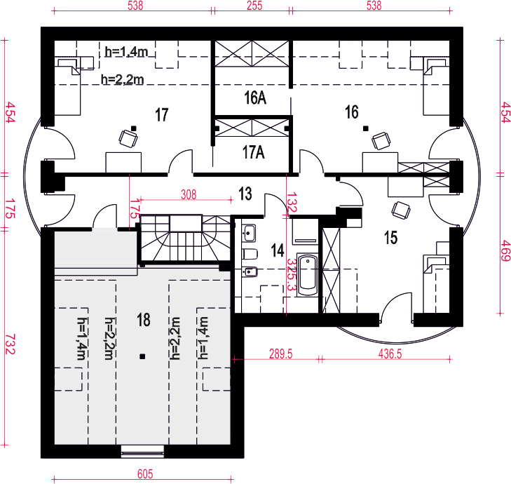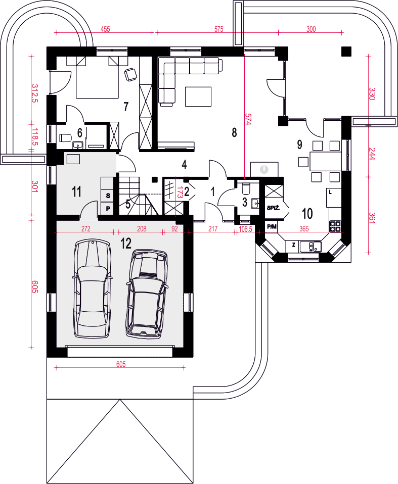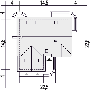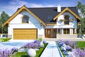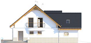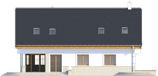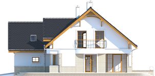 Graficzne opracowanie rzutów poglądowych widocznych na karcie projektu zostało wykonane przez Extradom.pl. Prezentowane przez Extradom.pl wizualizacje wykonane zostały przez autora projektu i należy poczytywać je jedynie za przykład i propozycję wykończenia, wizję architektoniczną autora projektu. Ostateczne wykończenie budynku może nastąpić na wiele sposobów. Szczegółowe rozwiązania zastosowane w oferowanej dokumentacji - w tym również ilość, lokalizacje i wygląd okien, drzwi, kominów - mogą w niewielkim stopniu różnić się od prezentowanej wizualizacji budynku.
