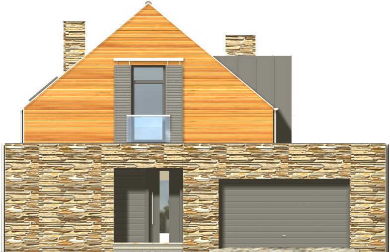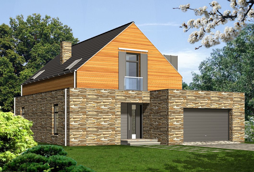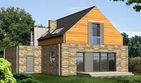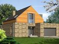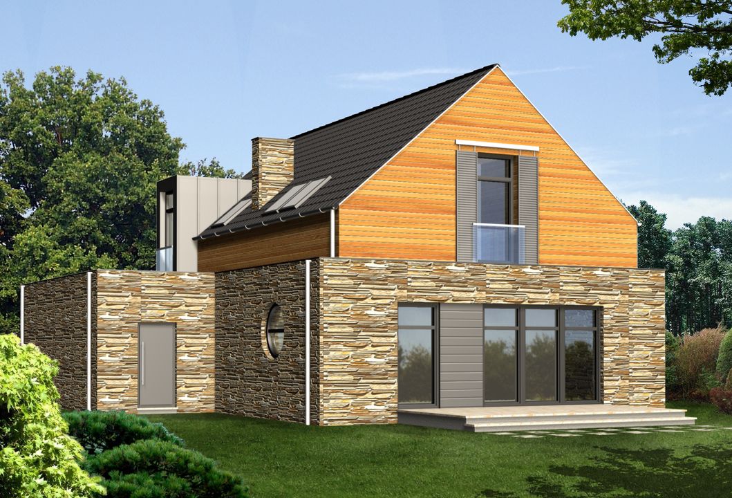 Ściany budynku zaprojektowano z betonu komórkowego docieplonego od zewnątrz lub w innej technologii w ramach adaptacji. Strop gęstożebrowy, więźba drewniana, pokrycie dachówką ceramiczną lub cementową. Inne pokrycia w ramach adaptacji. Elewacje okładane okładziną kamienną i deskami lub tynkowane.
