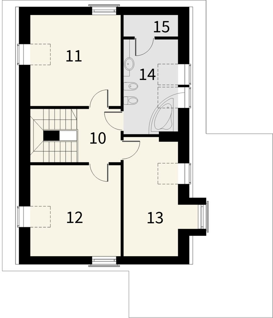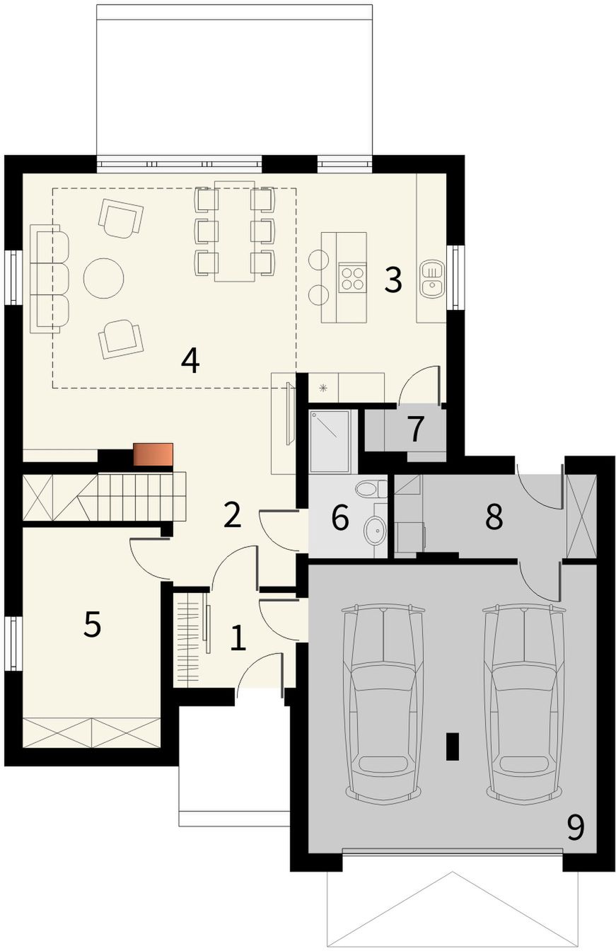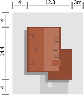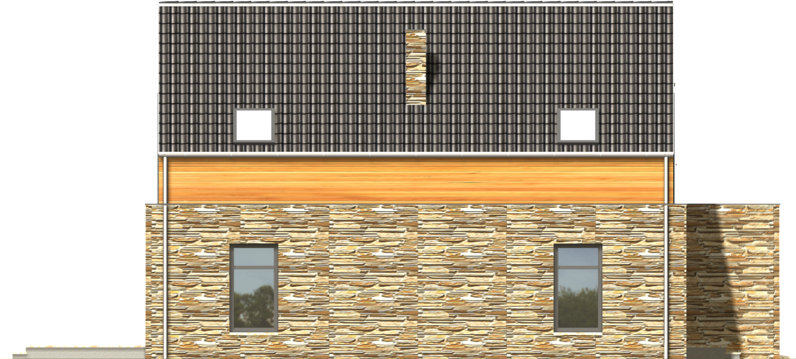 Graficzne opracowanie rzutów poglądowych widocznych na karcie projektu zostało wykonane przez Extradom.pl. Prezentowane przez Extradom.pl wizualizacje wykonane zostały przez autora projektu i należy poczytywać je jedynie za przykład i propozycję wykończenia, wizję architektoniczną autora projektu. Ostateczne wykończenie budynku może nastąpić na wiele sposobów. Szczegółowe rozwiązania zastosowane w oferowanej dokumentacji - w tym również ilość, lokalizacje i wygląd okien, drzwi, kominów - mogą w niewielkim stopniu różnić się od prezentowanej wizualizacji budynku.