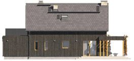 Graficzne opracowanie rzutów poglądowych widocznych na karcie projektu zostało wykonane przez Extradom.pl. Prezentowane przez Extradom.pl wizualizacje wykonane zostały przez autora projektu i należy poczytywać je jedynie za przykład i propozycję wykończenia, wizję architektoniczną autora projektu. Ostateczne wykończenie budynku może nastąpić na wiele sposobów. Szczegółowe rozwiązania zastosowane w oferowanej dokumentacji - w tym również ilość, lokalizacje i wygląd okien, drzwi, kominów - mogą w niewielkim stopniu różnić się od prezentowanej wizualizacji budynku.