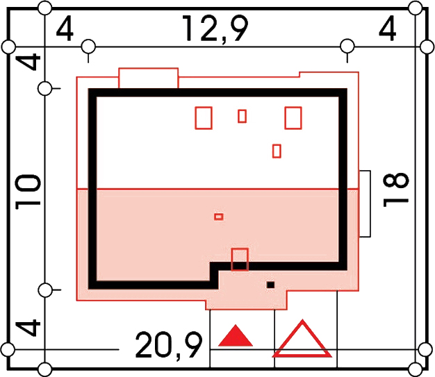 Fundamenty: betonowe. Ściany zewnętrzne: gazobeton 24 cm + styropian 12 cm. Ściany wewnętrzne: bloczki gazobetonowe 24 cm. Strop: gęstożebrowy Teriva I. Pokrycie dachowe: dachówka ceramiczna.