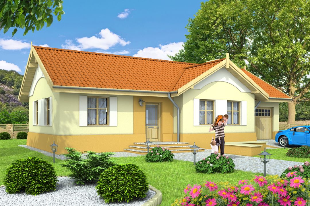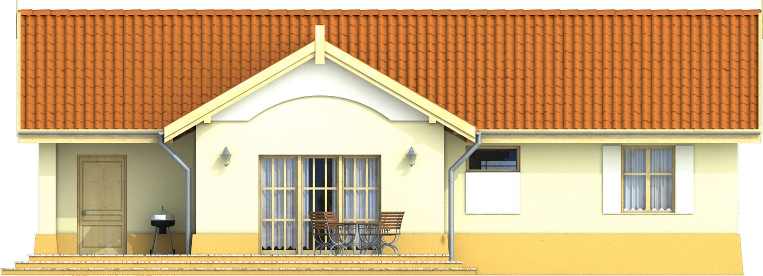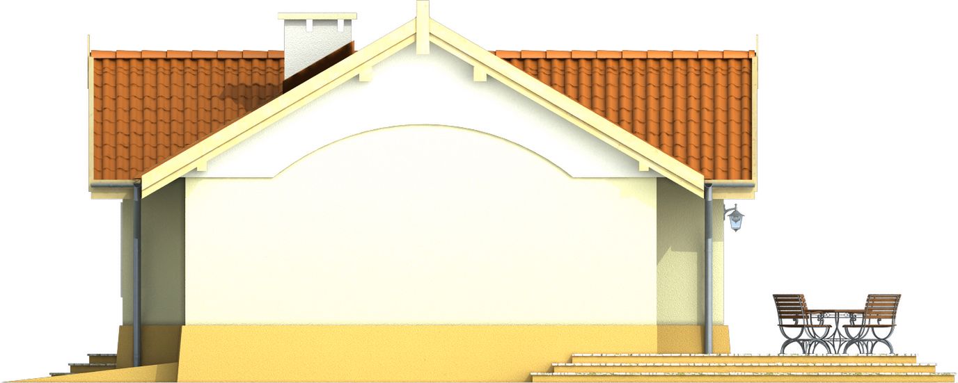 Graficzne opracowanie rzutów poglądowych widocznych na karcie projektu zostało wykonane przez Extradom.pl. Prezentowane przez Extradom.pl wizualizacje wykonane zostały przez autora projektu i należy poczytywać je jedynie za przykład i propozycję wykończenia, wizję architektoniczną autora projektu. Ostateczne wykończenie budynku może nastąpić na wiele sposobów. Szczegółowe rozwiązania zastosowane w oferowanej dokumentacji - w tym również ilość, lokalizacje i wygląd okien, drzwi, kominów - mogą w niewielkim stopniu różnić się od prezentowanej wizualizacji budynku.