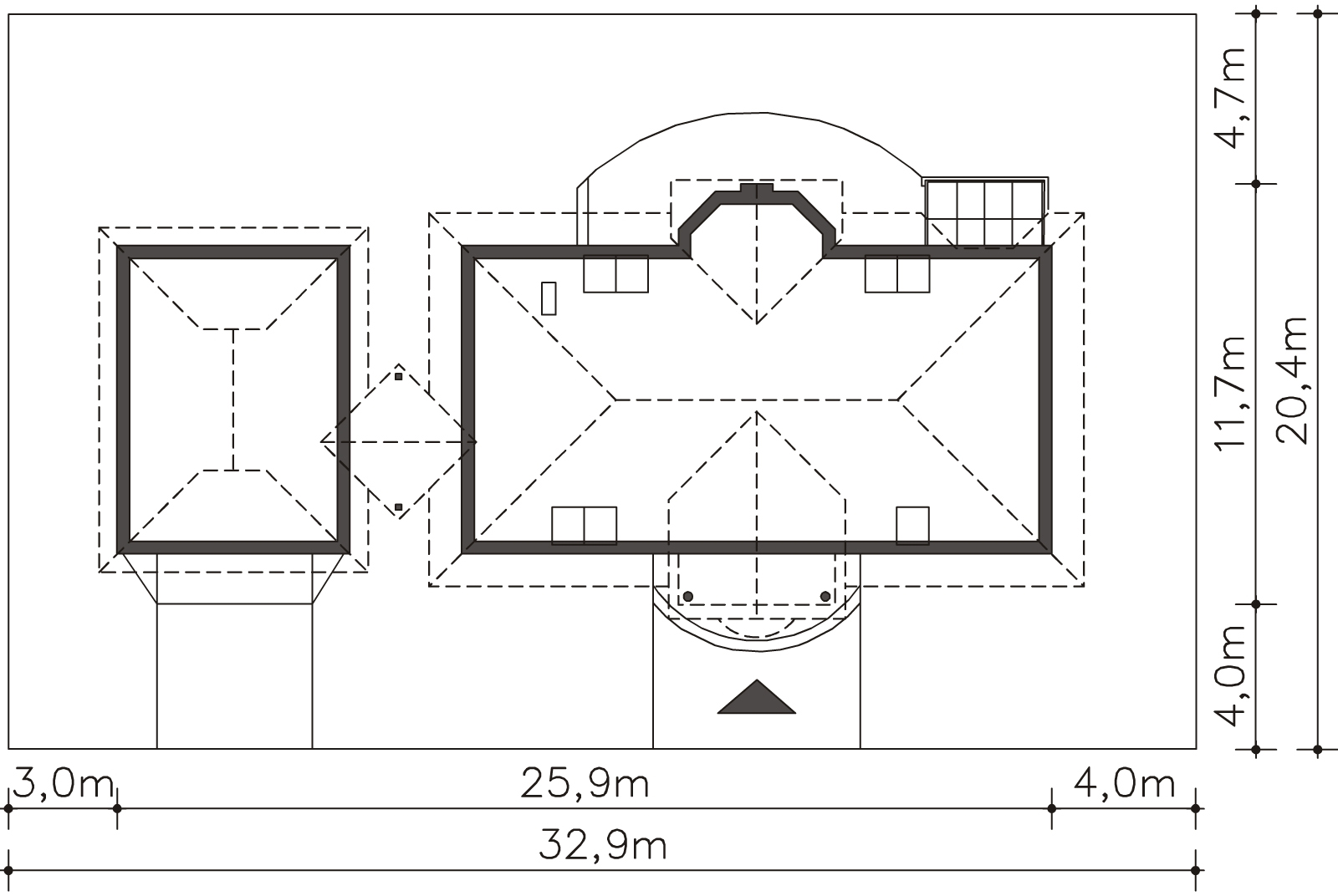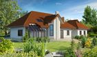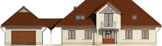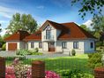 Technologia: domu standardowego. Ściany zewnętrzne: Ściana dwuwarstwowa z betonu komórkowego lub ceramiki poryzowanej „Porotherm” (Wienerberger) lub bloczków keramzyto - betonowych grubości, 34 - 35 cm o wsp. Uo = 0,25 - 0,29 W/m²K (24 - 25 cm ściana murowana + 10 cm wełna mineralna lub styropian „Termo Organika”, o wsp. λ = 0,042 W/m²K) Fundamenty: Tradycyjne żelbetowe ławy fundamentowe, ściany fundamentowe z bloczków betonowych M6, posadzka na płycie żelbetowej wspartej na ścianach fundamentowych. Izolacja od gruntu: posadzki na płycie z twardego nienasiąkliwego styropianu gr 20cm. Ściany wewnętrzne: nośne j.w. w zależności od zastosowanej technologii ścian zewnętrznych działowe szkieletowe okładane płytami gipsowo kartonowymi Strop: Gęstożebrowy typu Porotherm. Konstrukcja dachu: Tradycyjna więźba drewniana wykonana metodą ciesielską Pokrycie dachowe: Dachówka cementowa, „Braas” (Monier) lub ceramiczna „Koramic” (Wienerberger). Schody: Schody wewnętrzne drewniane na drewnianych belkach policzkowych. Można zastosować schody gotowe kupowane wg wysokości i montowane przez specjalistyczną firmę. Elewacje: tynki silikonowe lub akrylowe, podmurówki wykończone np. płytką klinkierową szczyty i wstawki z drewna lub tynkowane. Instalacje: grzewcza i przygotowania ciepłej wody użytkowej: gazowa z zastosowaniem kotła kondensacyjnego typu Vitodens 200 (Viessmann) instalacje c.o. z zast. systemów „Purmo” ogrzewanie podłogowe łazienek - elektryczna meta grzejna Izolacje termiczne: z wełny mineralnej „Isover” lub ze styropianu „Termo Organika” Kominy: W technologii Schiedel. Stolarka okienna i drzwiowa: Okna PVC Schüco Corona SI 82 o wsp. Uo = 0,6 W/m²K dla szyb i Uo = 1,0-1,2 W/m²K dla ramy, wsp. gn = 0,5. Okna połaciowe firmy „Fakro” - FTT Thermo o wsp. Uo = 0,5 W/m²K dla szyb i Uo = 0,94 W/m²K dla ramy, wsp. gn = 0,62. Drzwi zewnętrzne firmy „Hörmann” o całkowitym wsp. Uo = 1,3 W/m²K. Brama garażowa firmy „Hörmann” o całkowitym wsp. Uo = 1,3 W/m²K.