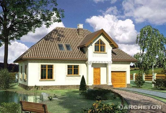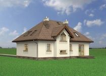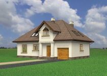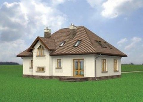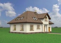 Graficzne opracowanie rzutów poglądowych widocznych na karcie projektu zostało wykonane przez Extradom.pl. Prezentowane przez Extradom.pl wizualizacje wykonane zostały przez autora projektu i należy poczytywać je jedynie za przykład i propozycję wykończenia, wizję architektoniczną autora projektu. Ostateczne wykończenie budynku może nastąpić na wiele sposobów. Szczegółowe rozwiązania zastosowane w oferowanej dokumentacji - w tym również ilość, lokalizacje i wygląd okien, drzwi, kominów - mogą w niewielkim stopniu różnić się od prezentowanej wizualizacji budynku.