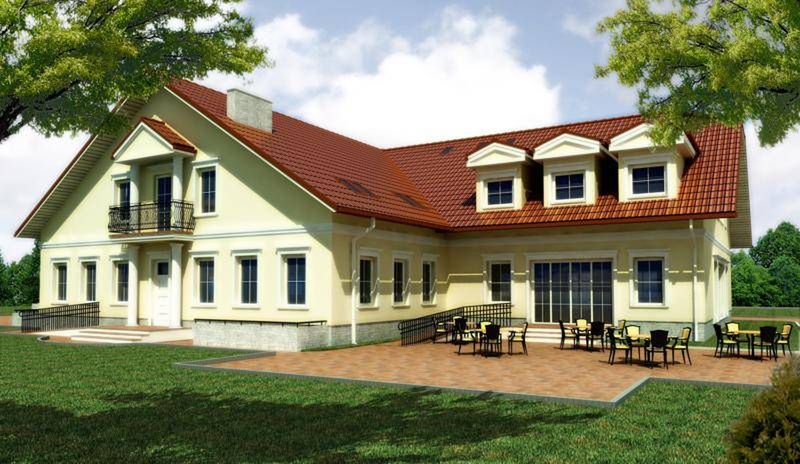 Graficzne opracowanie rzutów poglądowych widocznych na karcie projektu zostało wykonane przez Extradom.pl. Prezentowane przez Extradom.pl wizualizacje wykonane zostały przez autora projektu i należy poczytywać je jedynie za przykład i propozycję wykończenia, wizję architektoniczną autora projektu. Ostateczne wykończenie budynku może nastąpić na wiele sposobów. Szczegółowe rozwiązania zastosowane w oferowanej dokumentacji - w tym również ilość, lokalizacje i wygląd okien, drzwi, kominów - mogą w niewielkim stopniu różnić się od prezentowanej wizualizacji budynku.