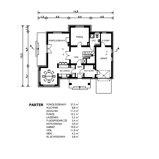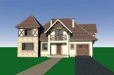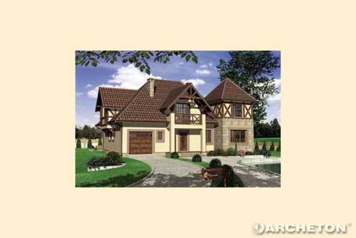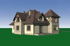 Graficzne opracowanie rzutów poglądowych widocznych na karcie projektu zostało wykonane przez Extradom.pl. Prezentowane przez Extradom.pl wizualizacje wykonane zostały przez autora projektu i należy poczytywać je jedynie za przykład i propozycję wykończenia, wizję architektoniczną autora projektu. Ostateczne wykończenie budynku może nastąpić na wiele sposobów. Szczegółowe rozwiązania zastosowane w oferowanej dokumentacji - w tym również ilość, lokalizacje i wygląd okien, drzwi, kominów - mogą w niewielkim stopniu różnić się od prezentowanej wizualizacji budynku.