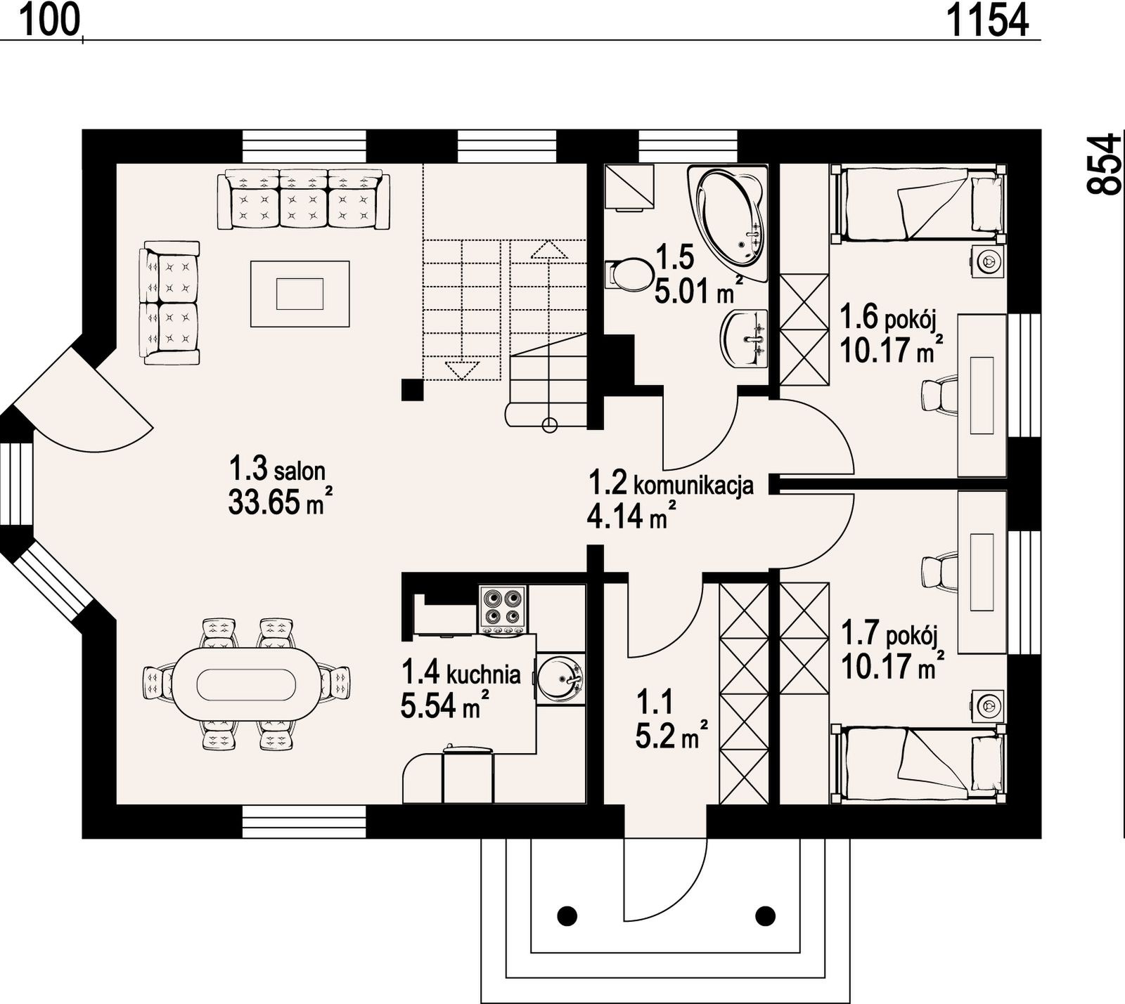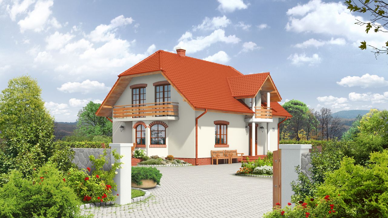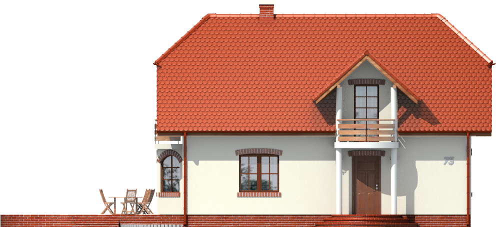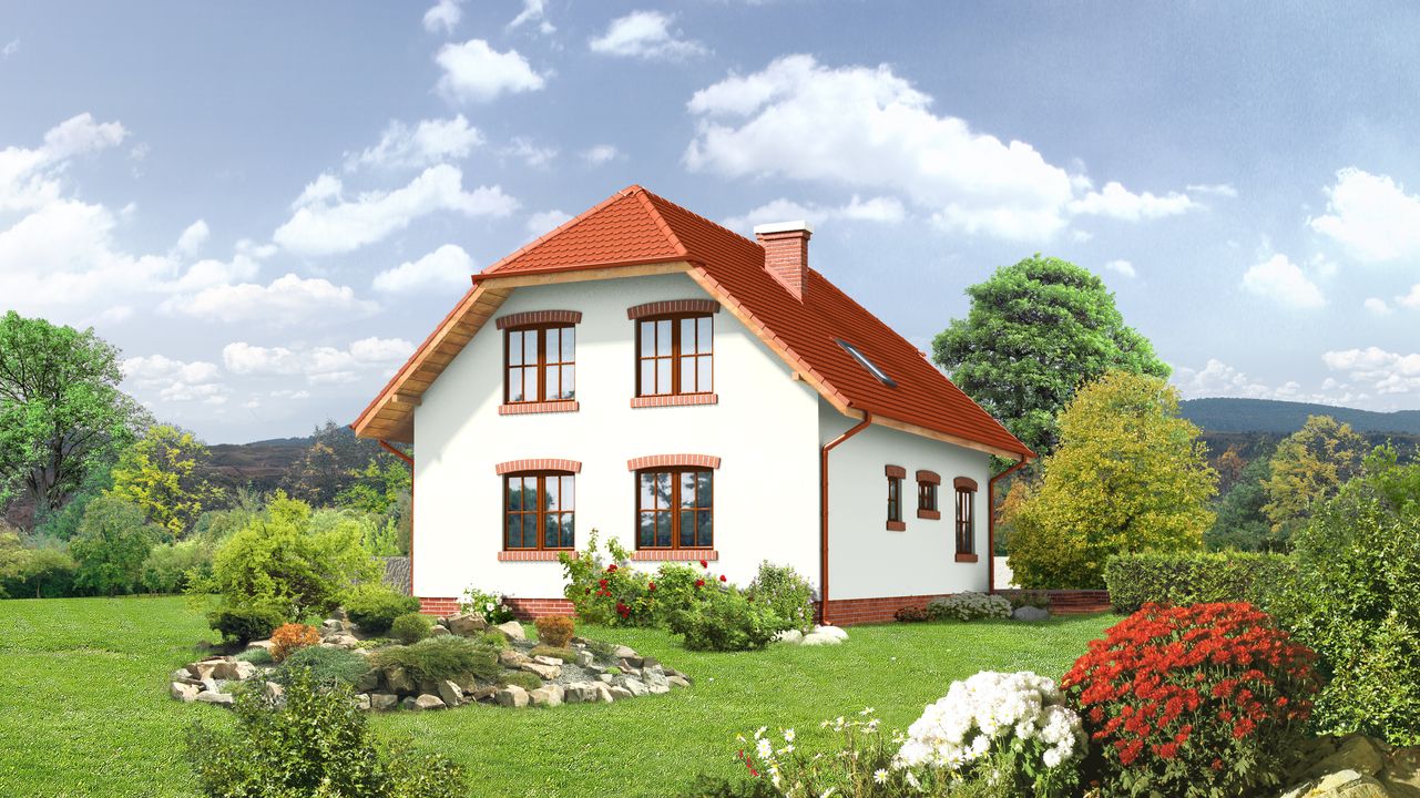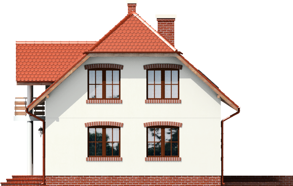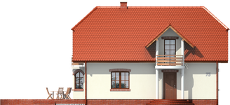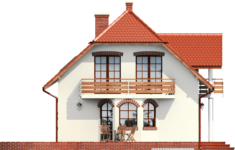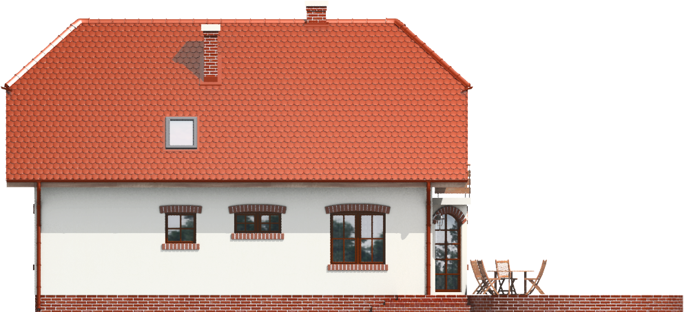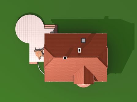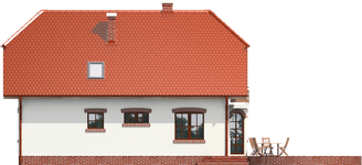 Graficzne opracowanie rzutów poglądowych widocznych na karcie projektu zostało wykonane przez Extradom.pl. Prezentowane przez Extradom.pl wizualizacje wykonane zostały przez autora projektu i należy poczytywać je jedynie za przykład i propozycję wykończenia, wizję architektoniczną autora projektu. Ostateczne wykończenie budynku może nastąpić na wiele sposobów. Szczegółowe rozwiązania zastosowane w oferowanej dokumentacji - w tym również ilość, lokalizacje i wygląd okien, drzwi, kominów - mogą w niewielkim stopniu różnić się od prezentowanej wizualizacji budynku.