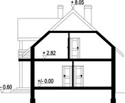 Wysokość ścianki kolankowej: 1.13 m. Strop: płyta żelbetowa. Pokrycie dachu: dachówka ceramiczna. Ściany zewnętrzne: pustaki ceramiczne + styropian. Ściany wewnętrzne: pustaki ceramiczne. Typ ogrzewania: kocioł gazowy.