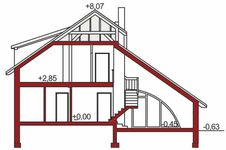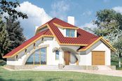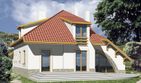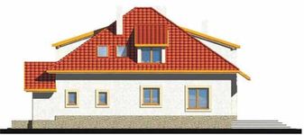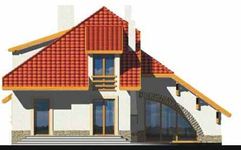 Graficzne opracowanie rzutów poglądowych widocznych na karcie projektu zostało wykonane przez Extradom.pl. Prezentowane przez Extradom.pl wizualizacje wykonane zostały przez autora projektu i należy poczytywać je jedynie za przykład i propozycję wykończenia, wizję architektoniczną autora projektu. Ostateczne wykończenie budynku może nastąpić na wiele sposobów. Szczegółowe rozwiązania zastosowane w oferowanej dokumentacji - w tym również ilość, lokalizacje i wygląd okien, drzwi, kominów - mogą w niewielkim stopniu różnić się od prezentowanej wizualizacji budynku.
