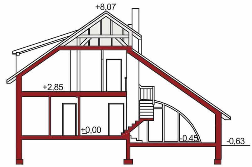 Ściany: bloczek z betonu komórkowego 24 cm, styropian Termo Organika 12 cm, tynk. Strop:Teriva 1. Dach: czterospadowy, nachylenie 35 st. , więźba drewniana, dachówka ceramiczna ocieplenie dachu: wełna mineralna ISOVER Uni Mata ogrzewanie: gazowe okna dachowe: VELUX.