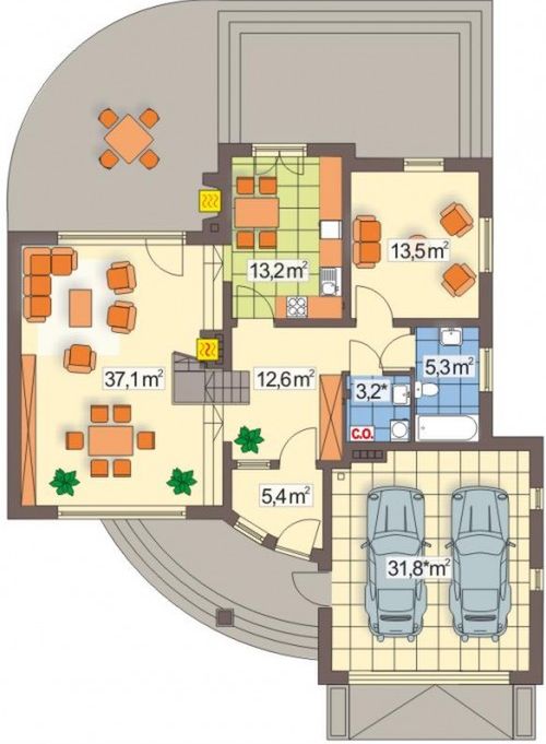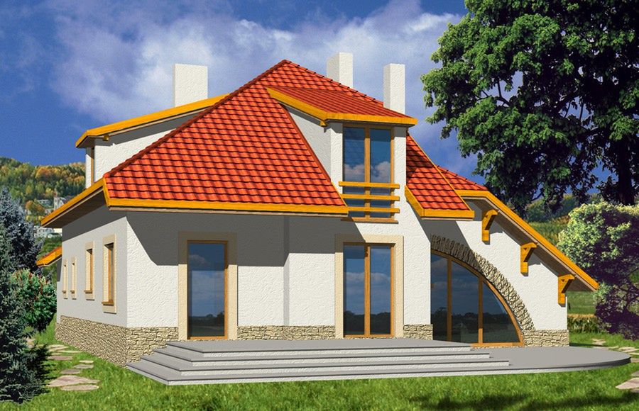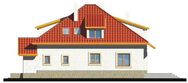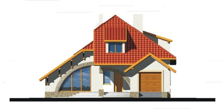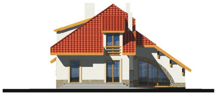 Graficzne opracowanie rzutów poglądowych widocznych na karcie projektu zostało wykonane przez Extradom.pl. Prezentowane przez Extradom.pl wizualizacje wykonane zostały przez autora projektu i należy poczytywać je jedynie za przykład i propozycję wykończenia, wizję architektoniczną autora projektu. Ostateczne wykończenie budynku może nastąpić na wiele sposobów. Szczegółowe rozwiązania zastosowane w oferowanej dokumentacji - w tym również ilość, lokalizacje i wygląd okien, drzwi, kominów - mogą w niewielkim stopniu różnić się od prezentowanej wizualizacji budynku.