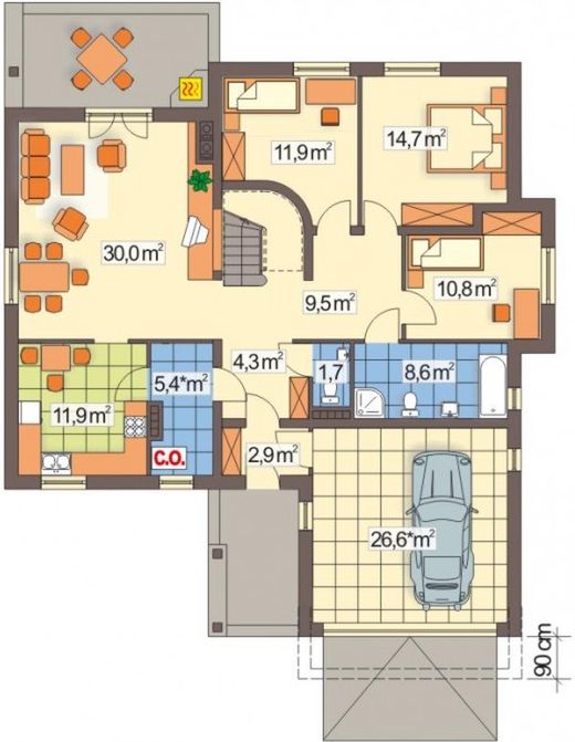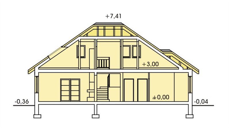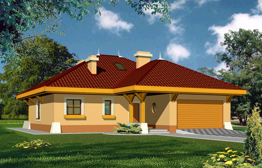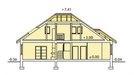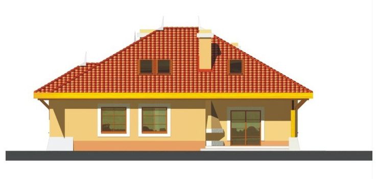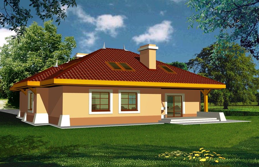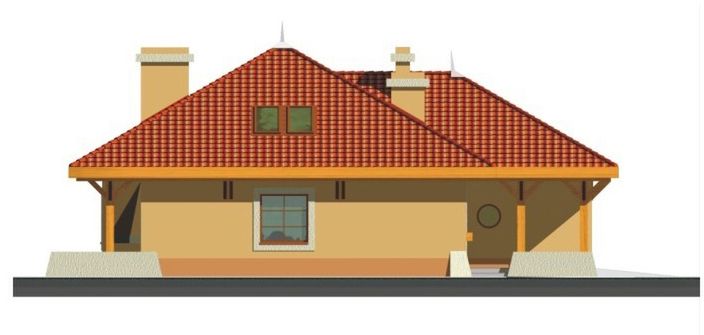 Graficzne opracowanie rzutów poglądowych widocznych na karcie projektu zostało wykonane przez Extradom.pl. Prezentowane przez Extradom.pl wizualizacje wykonane zostały przez autora projektu i należy poczytywać je jedynie za przykład i propozycję wykończenia, wizję architektoniczną autora projektu. Ostateczne wykończenie budynku może nastąpić na wiele sposobów. Szczegółowe rozwiązania zastosowane w oferowanej dokumentacji - w tym również ilość, lokalizacje i wygląd okien, drzwi, kominów - mogą w niewielkim stopniu różnić się od prezentowanej wizualizacji budynku.